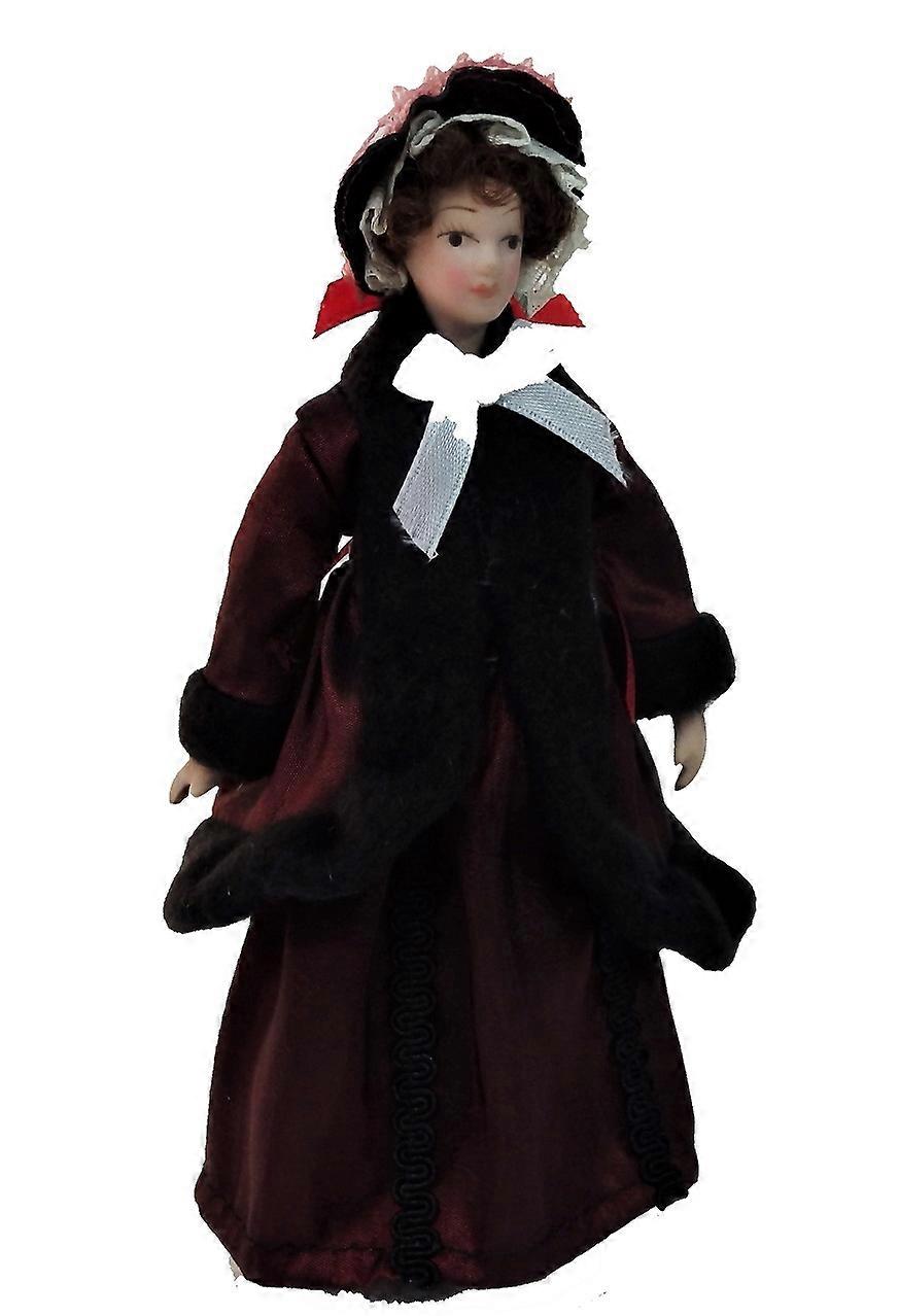 Dolls House Victorian Lady In Red Coat Miniature Porcelain People