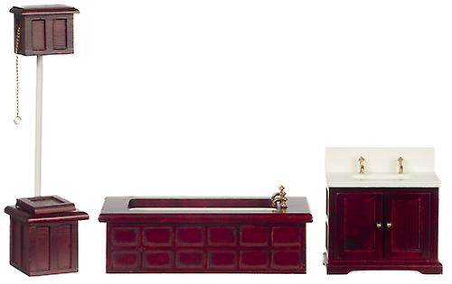 Dolls House Victorian Mahogany Bathroom Suite Miniature Furniture Set