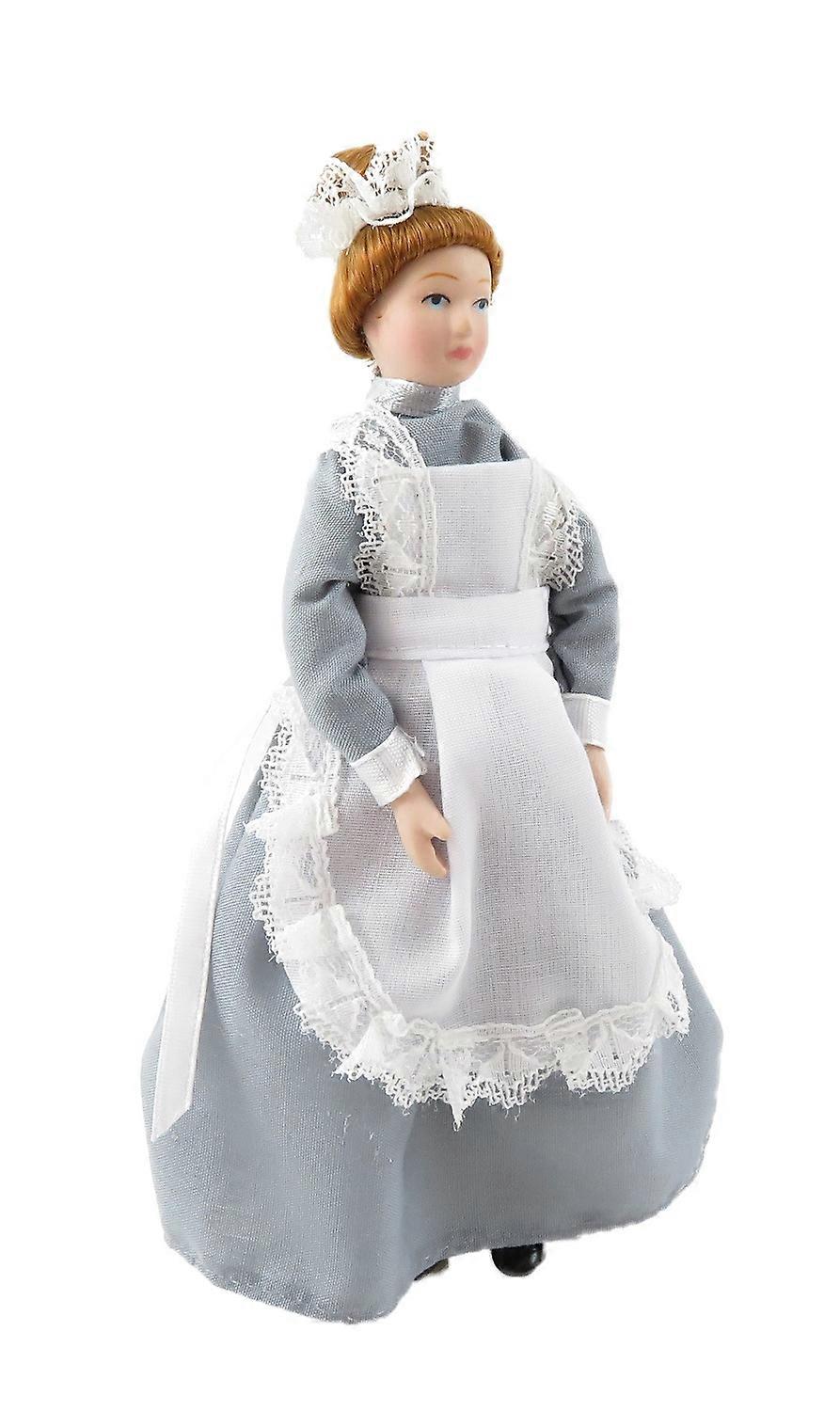 Dolls House Victorian Parlour Maid Woman Lady Servant In Grey Porcelain People