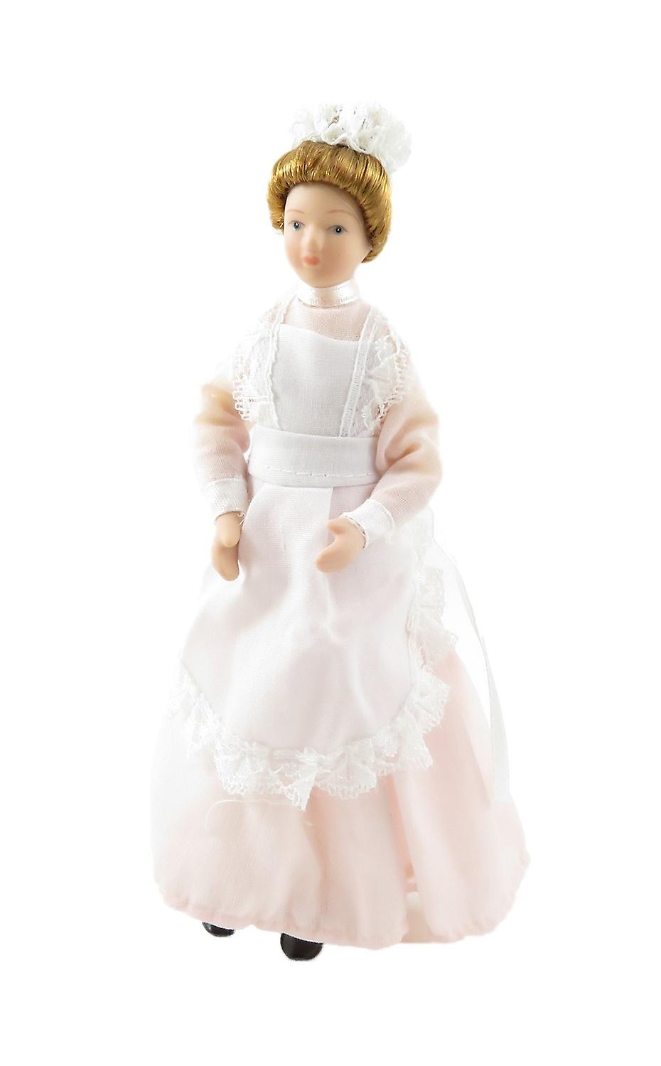 Dolls House Victorian Parlour Maid Woman Lady Servant In Pink Porcelain People
