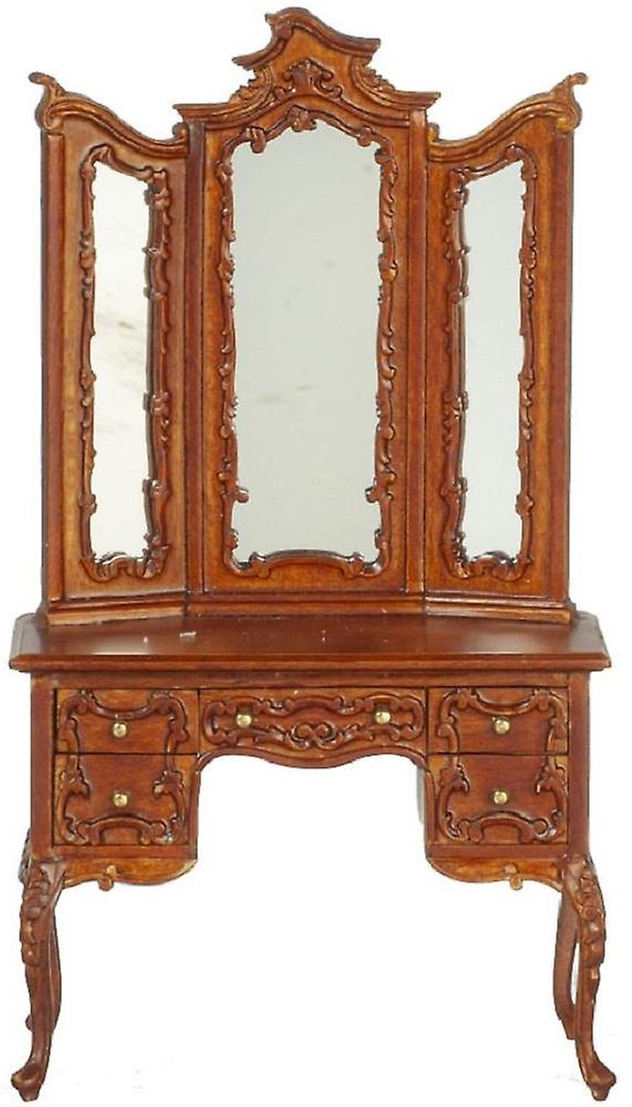 Dolls House Victorian Walnut Triple Mirror Dressing Table Jbm Bedroom Furniture