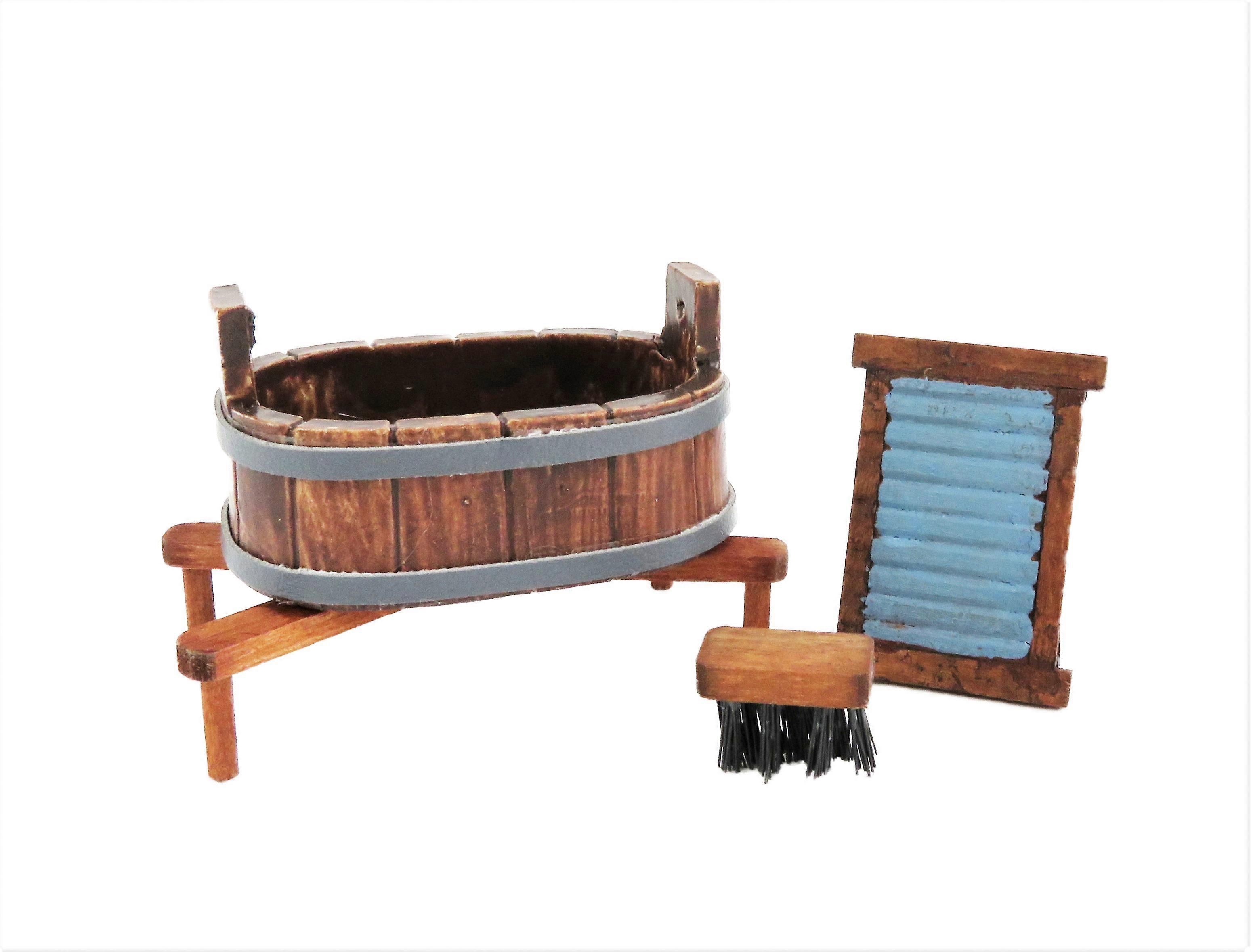 Dolls House Victorian Wash Tub On Legs Laundry Washboard & Scrubbing Brush