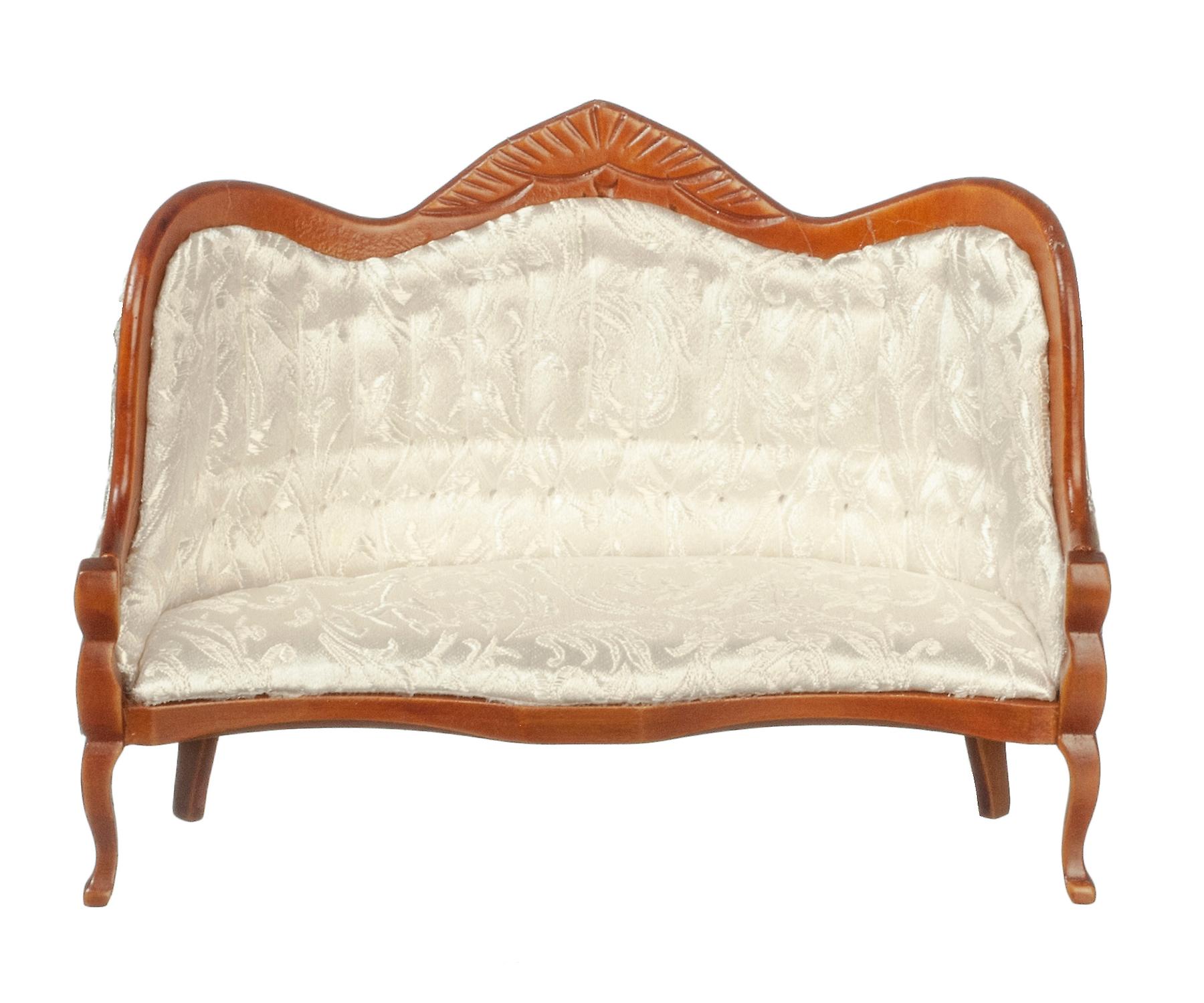 Dolls House Victorian White Sofa Miniature Walnut Living Room Furniture 1:12
