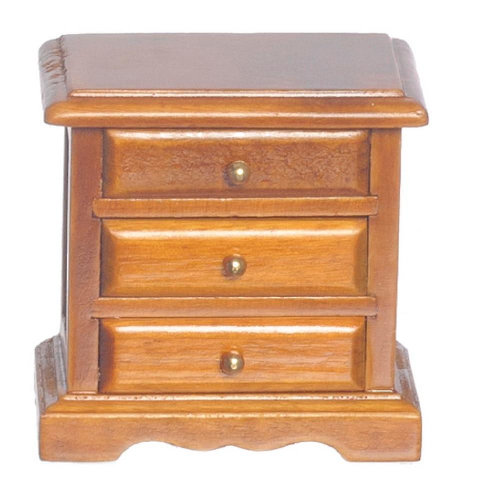 Dolls House Walnut Bedside 3 Drawer Chest Nightstand Miniature Bedroom Furniture