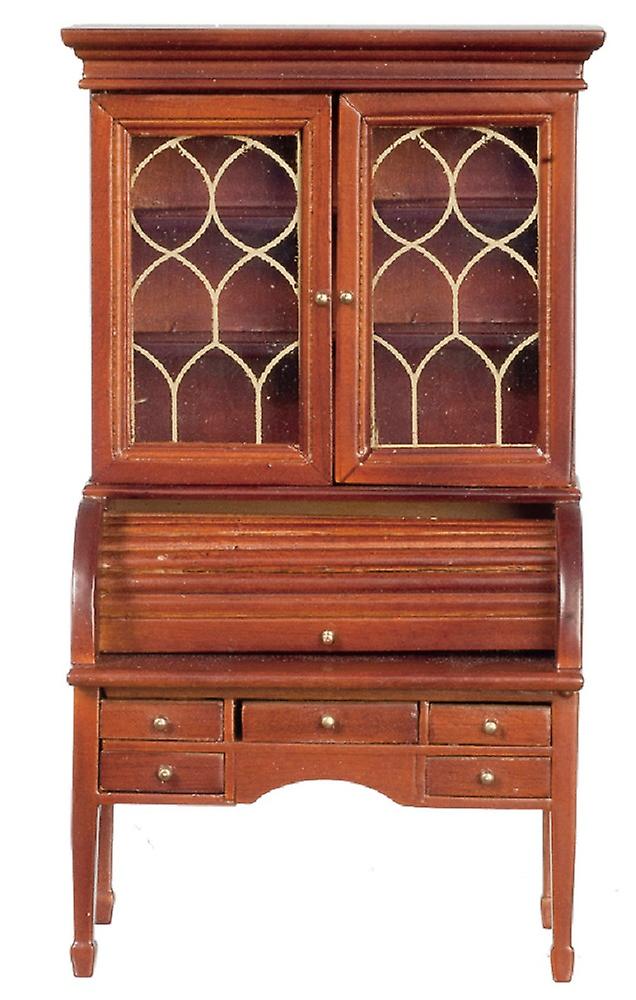 Dolls House Walnut Colonial Bureau Desk & Bookcase 1:12 Study Office Furniture