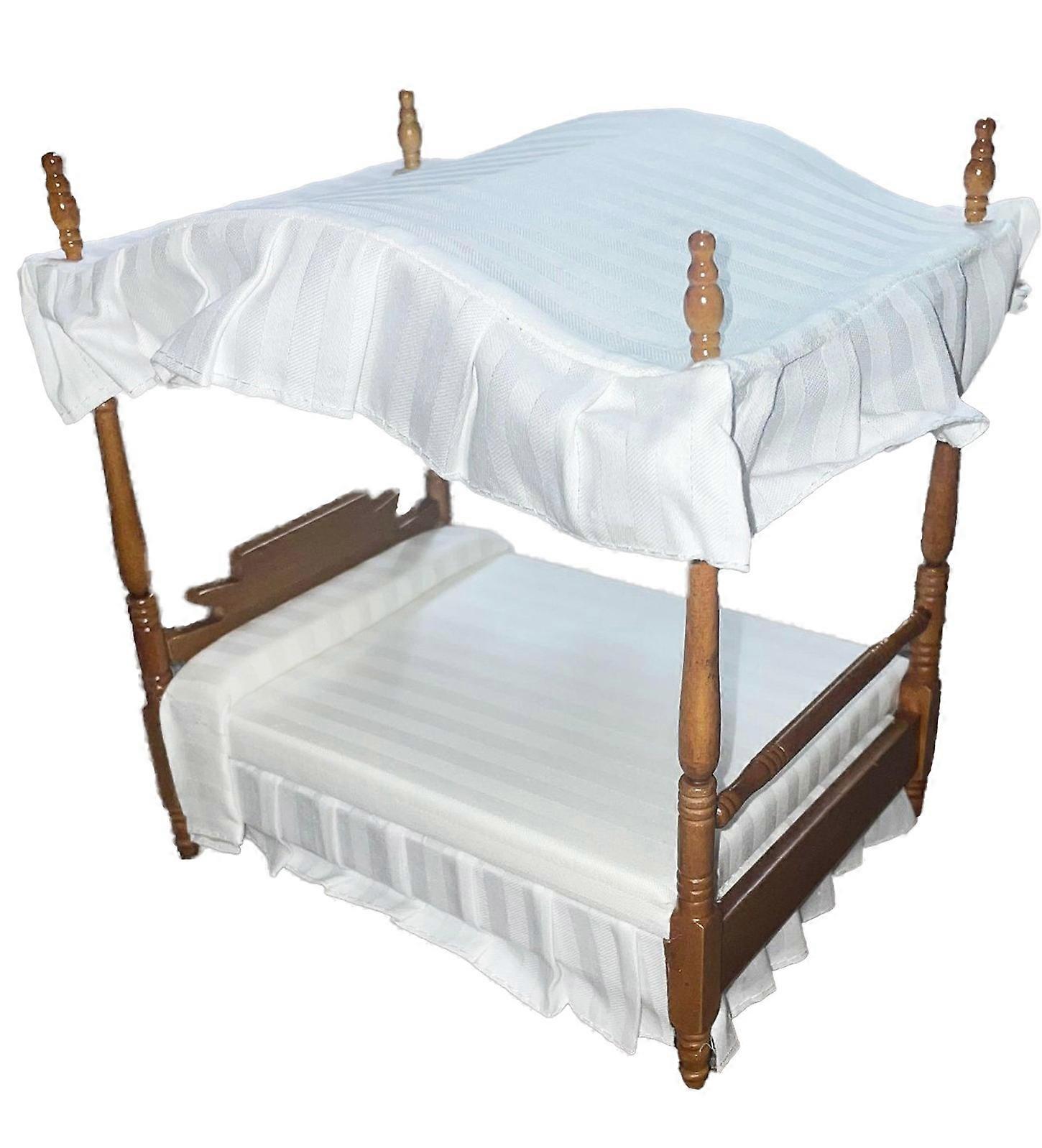 Dolls House Walnut Double 4 Poster Canopy Bed Miniature 1:12 Bedroom Furniture