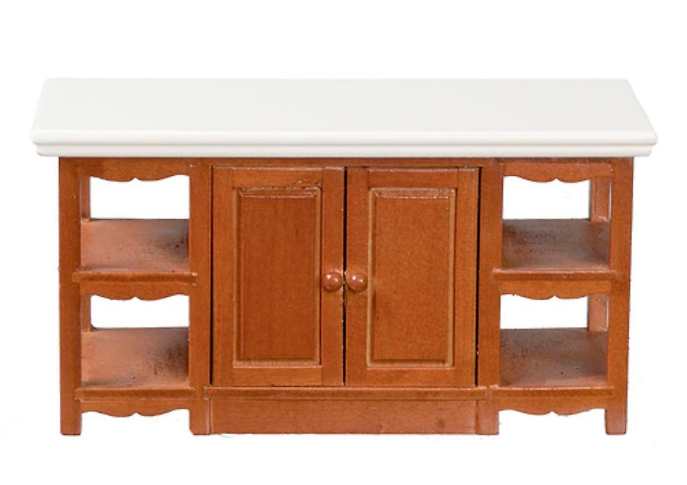 Dolls House Walnut Island Unit Miniature Wooden Kitchen Furniture