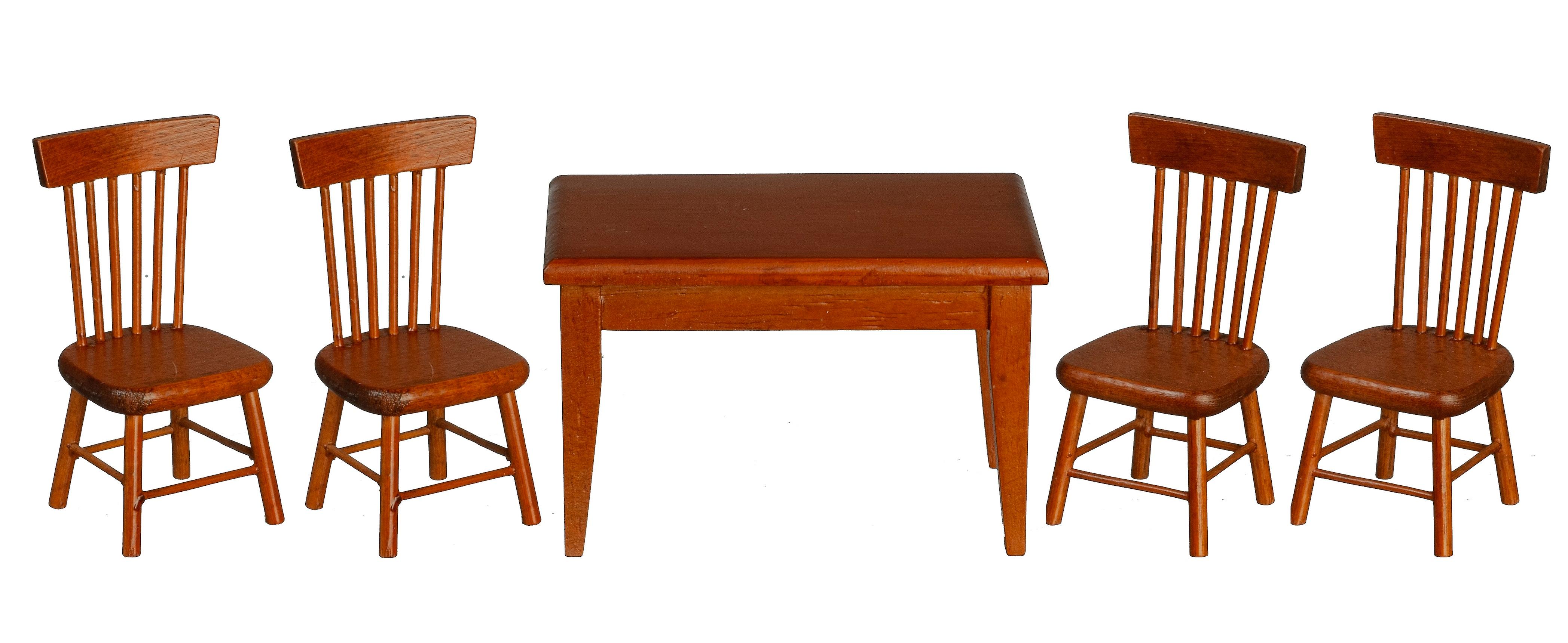 Dolls House Walnut Table & 4 Chairs Miniature Kitchen Dining Room Furniture