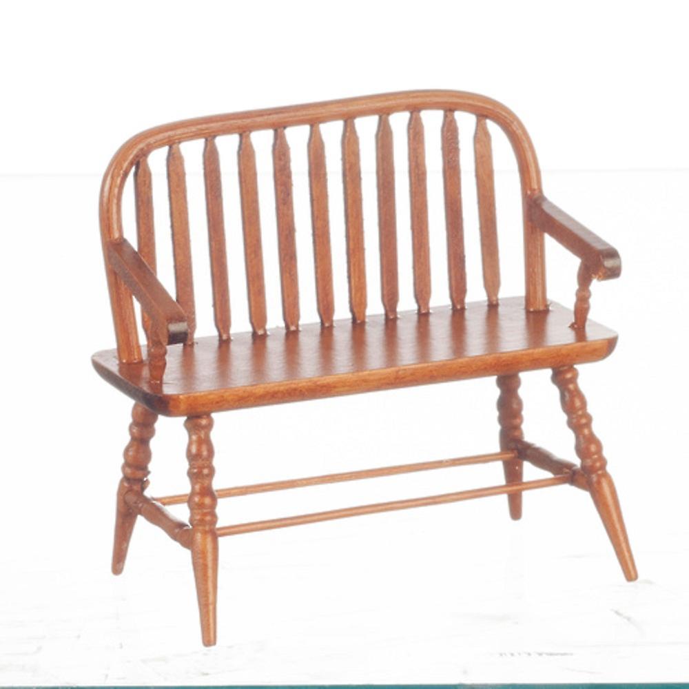 Dolls House Walnut Wood Colonial Windsor Bench Miniature 1:12 Scale Furniture