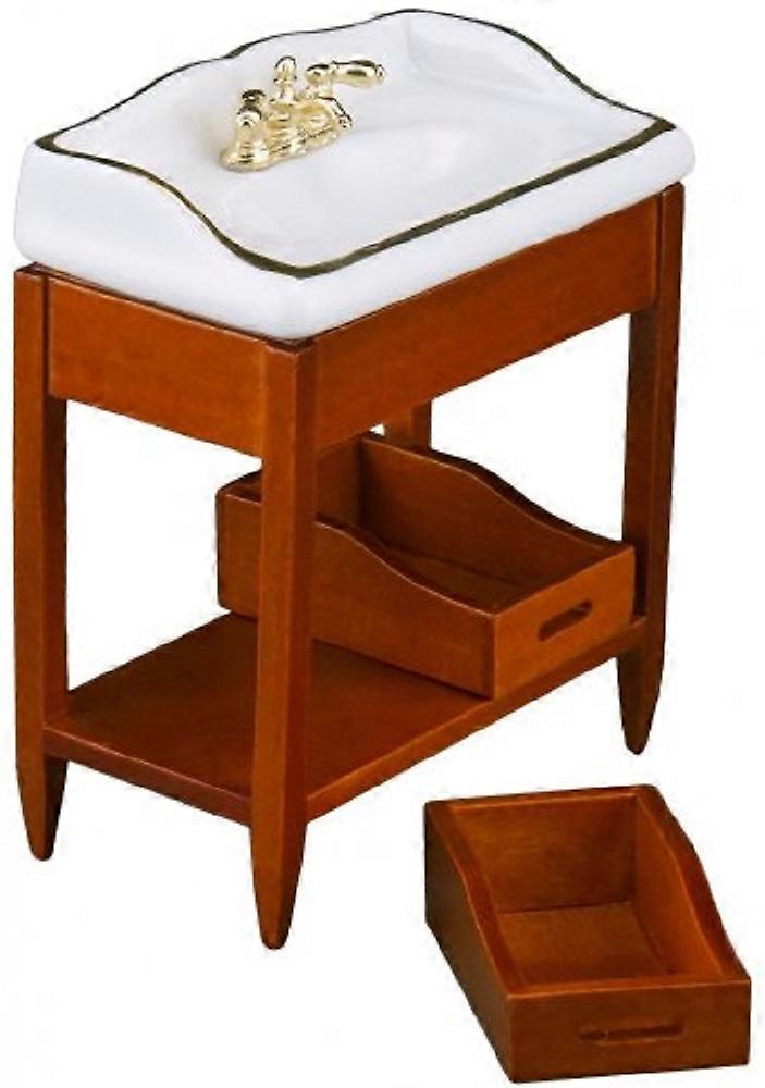Dolls House White & Gold Vanity Sink Unit Miniature Reutter Bathroom Furniture