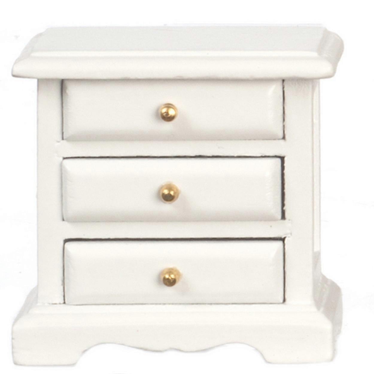 Dolls House White Bedside 3 Drawer Chest Nightstand Miniature Bedroom Furniture