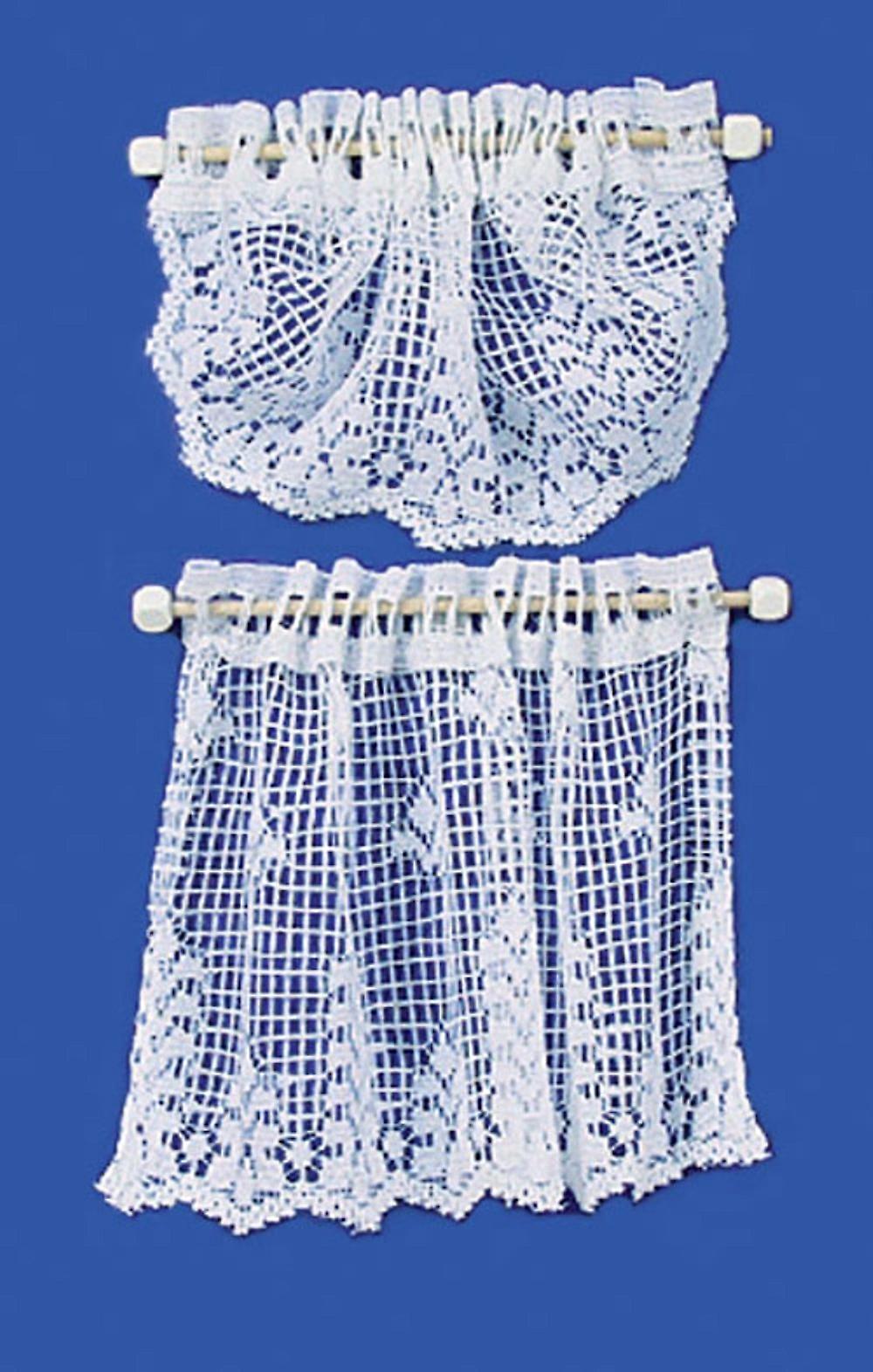 Dolls House White Crochet Swag & Curtain Net Lace Miniature Window Accessory