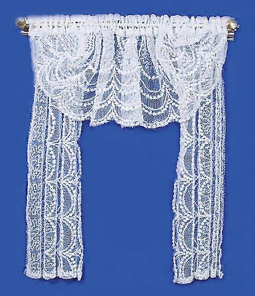 Dolls House White Lace Double Drape Curtain Miniature Accessory