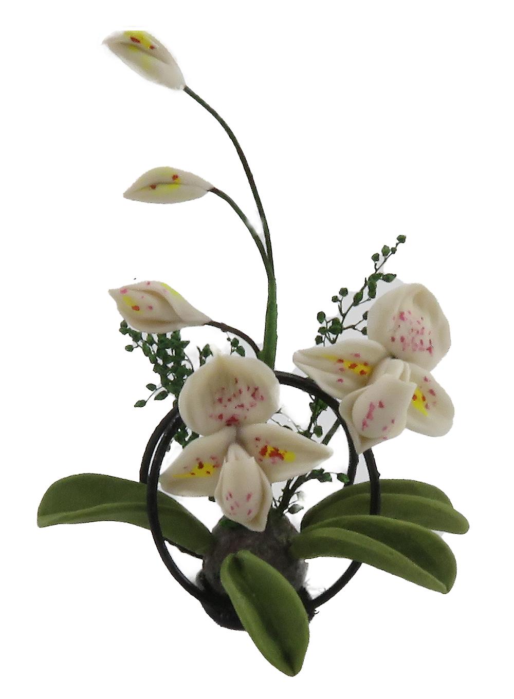 Dolls House White Lilly Flowers Display On Black Metal Stand Garden Accessory