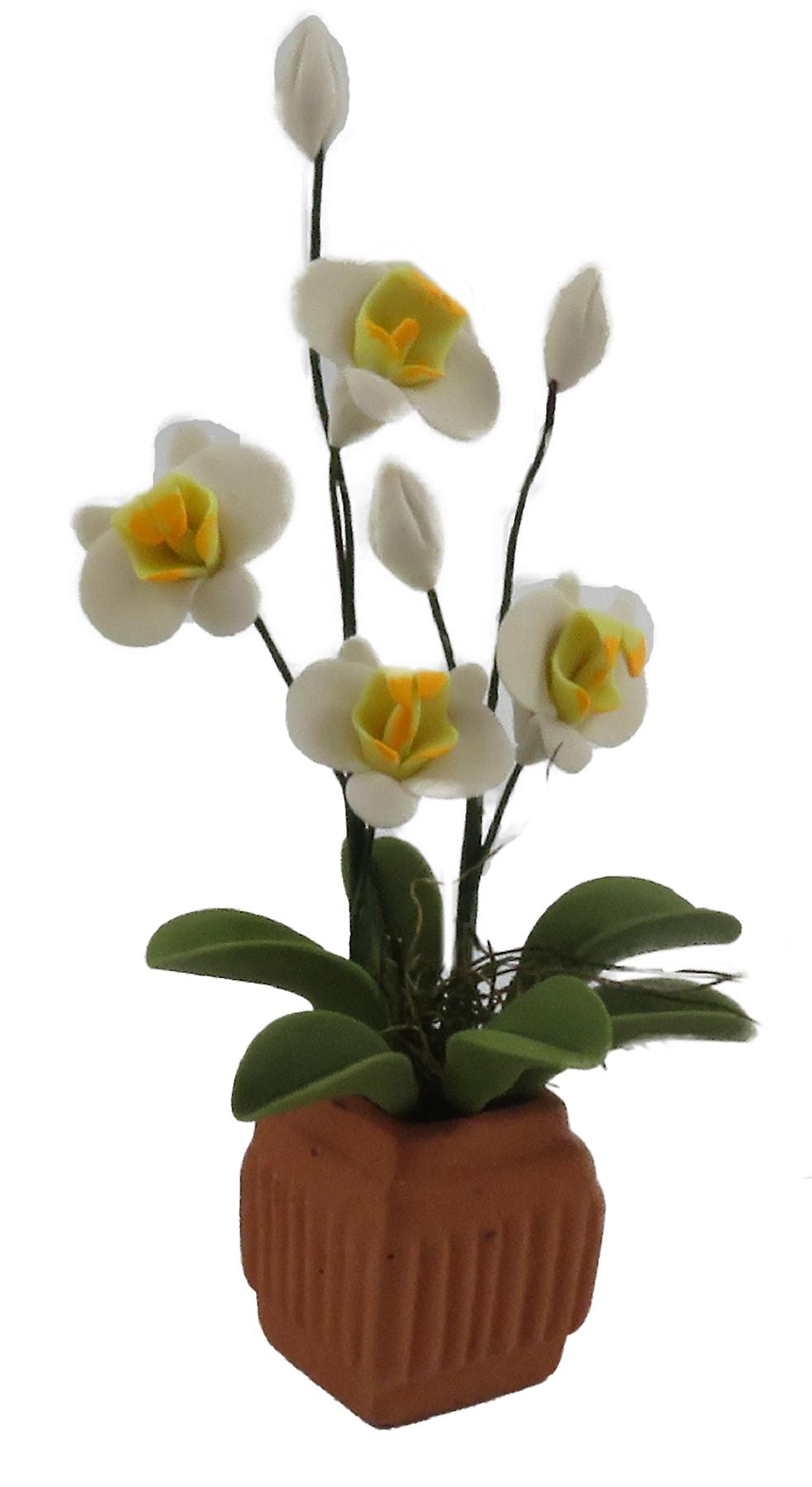 Dolls House White Lilly Flowers Square Terracotta Plant Pot Garden Accessory