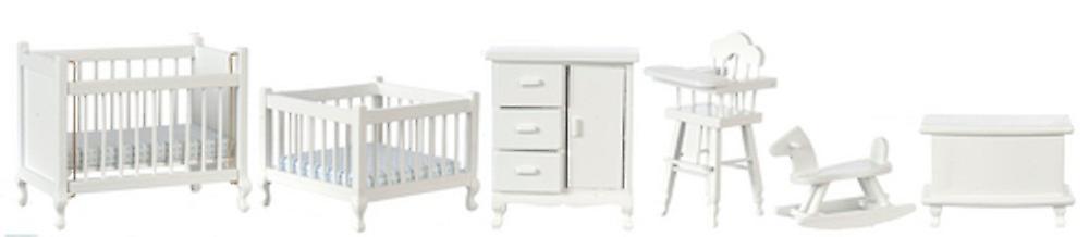 Dolls House White Nursery Furniture Set Miniature 6 Piece Baby Room 1:12 Scale