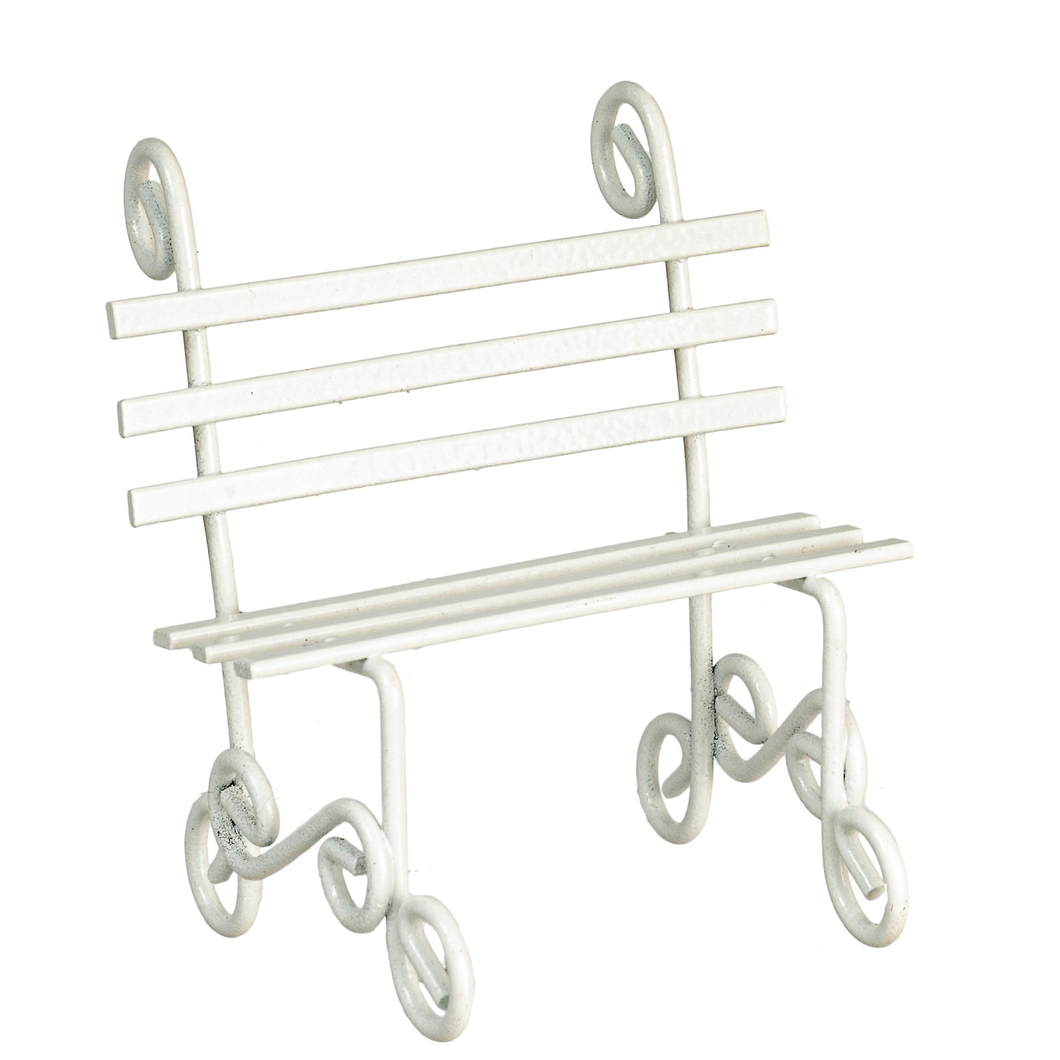 Dolls House White Slatted Garden Bench Miniature Outdoor Park Furniture Small