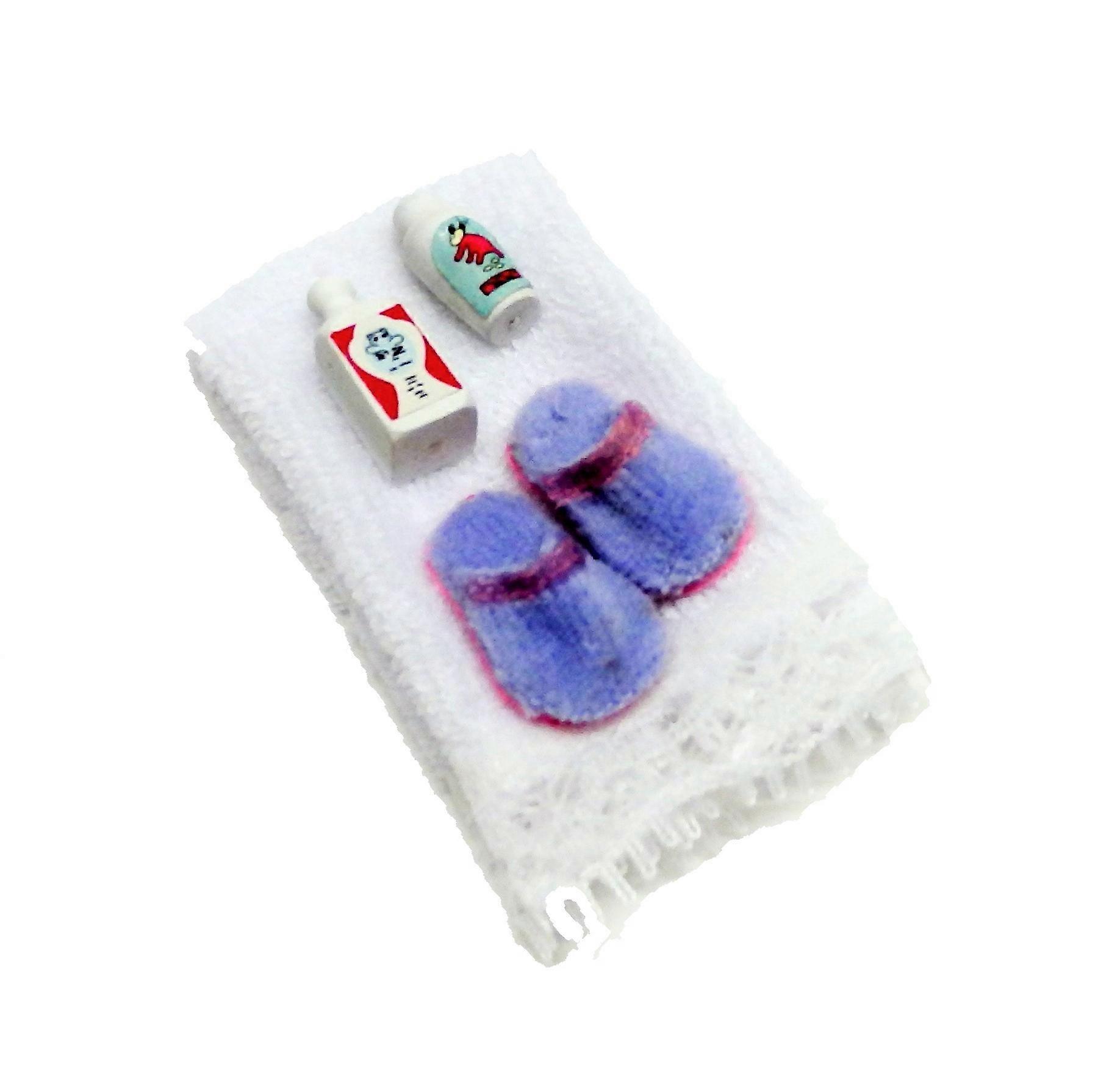 Dolls House White Towel Slippers & Bubble Baths Bathroom Accessory
