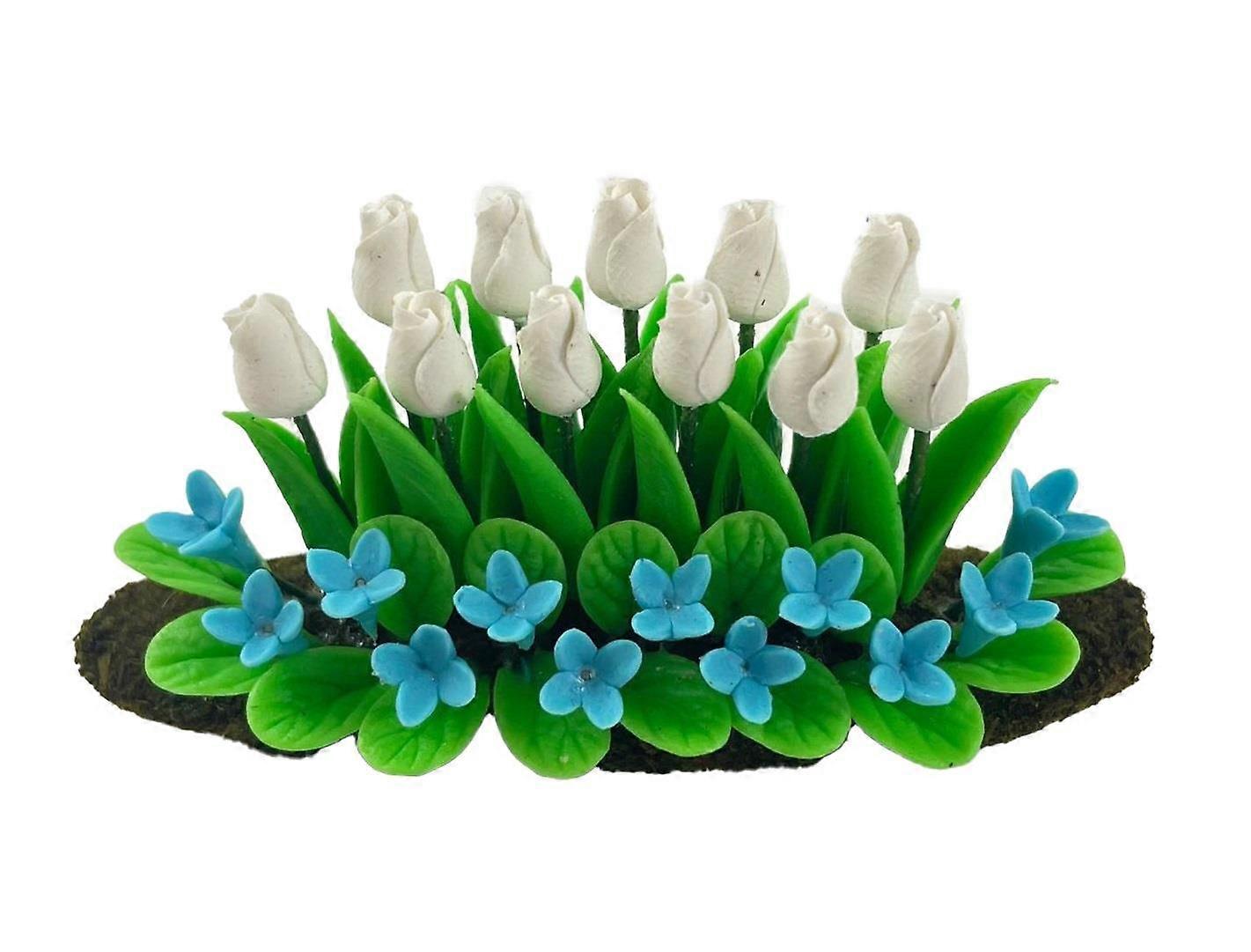 Dolls House White Tulips Flowers In Ground Grass Miniature 1:12 Garden Accessory