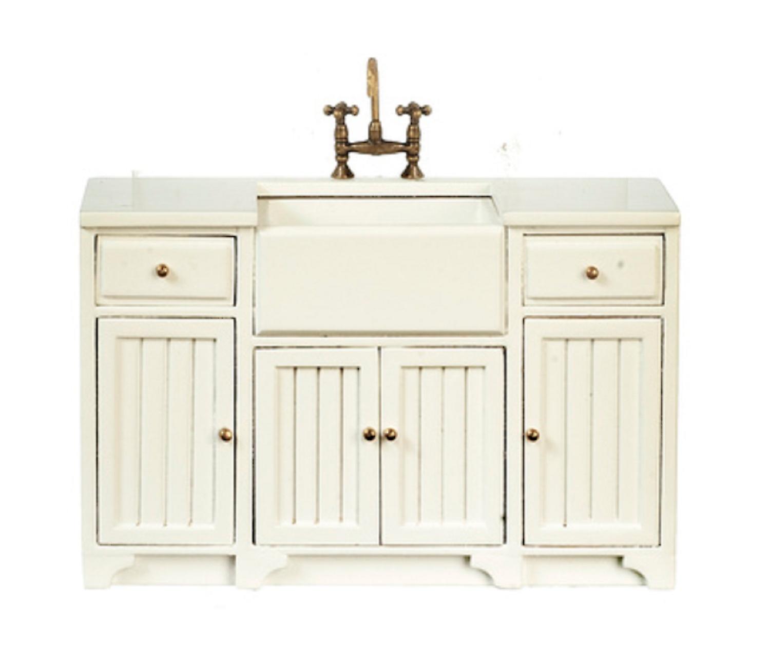 Dolls House White Unit With Belfast Sink Jbm Miniature Kitchen Furniture