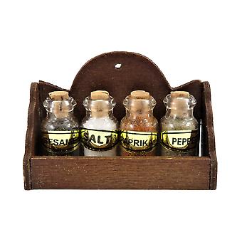 Dolls House Wooden Wall Shelf With 4 Spice Jars Miniature 1:12 Kitchen Accessory
