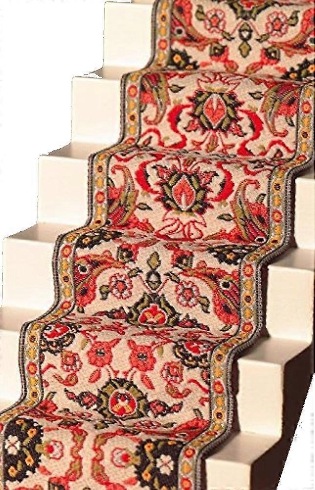 Dolls House Woven Stair Carpet Runner Red Green Miniature Flooring