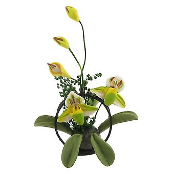 Dolls House Yellow Lilly Flowers Display On Black Metal Stand Garden Accessory