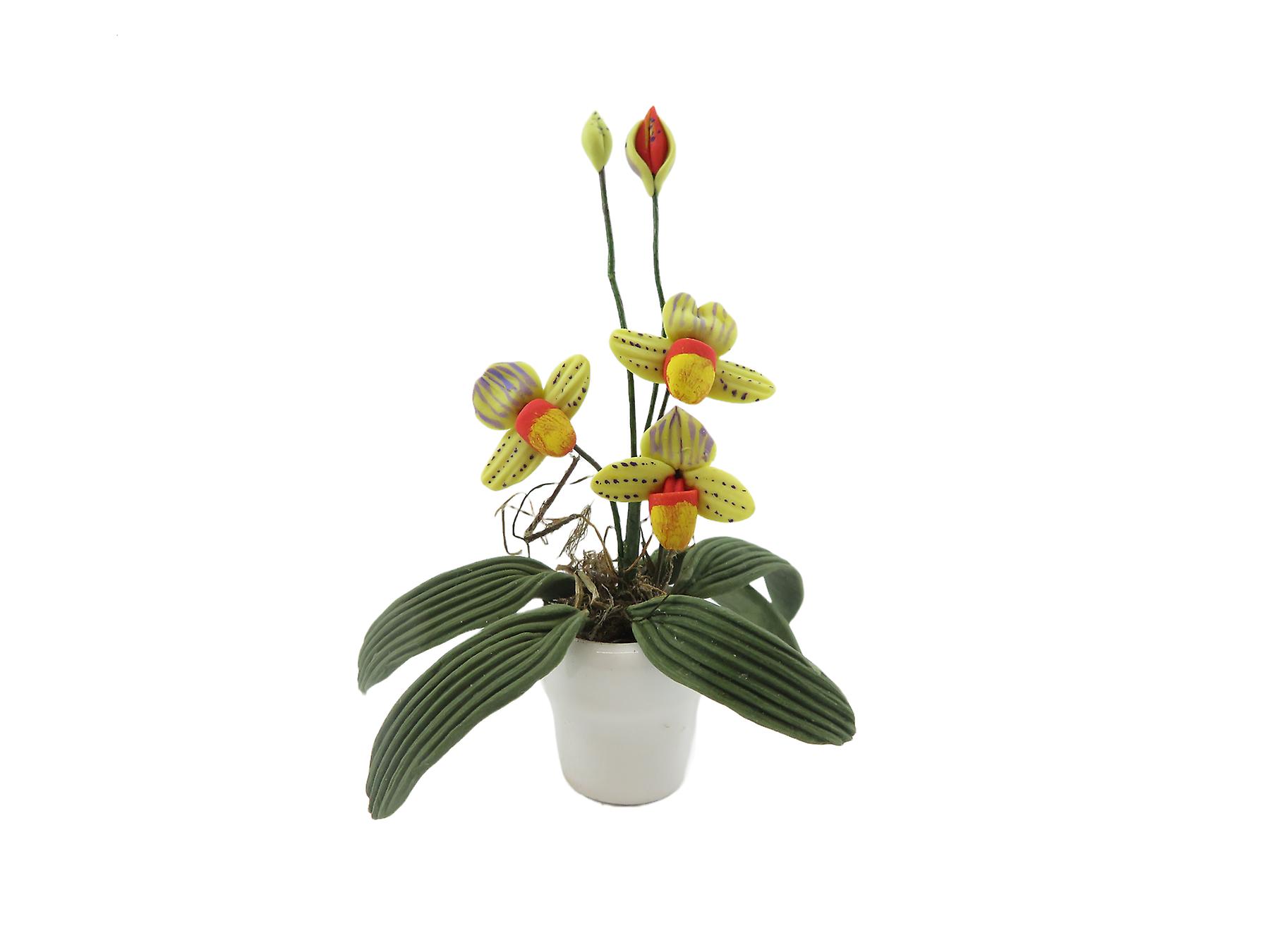 Dolls House Yellow Orchid Flowers In White Plant Pot Outdoor Garden Accessory