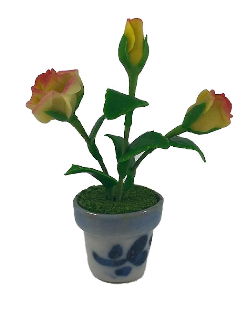 Dolls House Yellow Rose Flowers In Terracotta Pot Miniature Garden Accessory