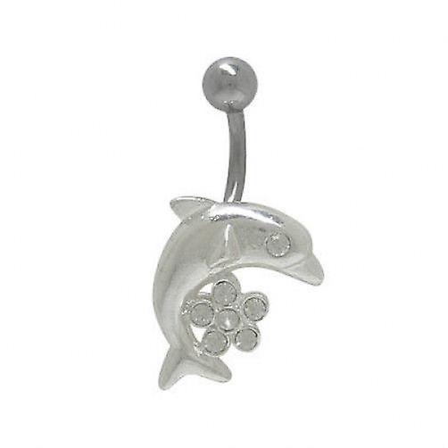 Dolphin Belly Ring with Flower Cz Jewels This is a sweet little dolphin belly ring made with a 316L high-grade surgical steel shaft, the dolphin with flower design and clear cz gems.The externally threaded top ball size is 5mm.This navel ring measures 14 gauge and 10mm- 3/8 of an inch.The entire piece is nickel free.