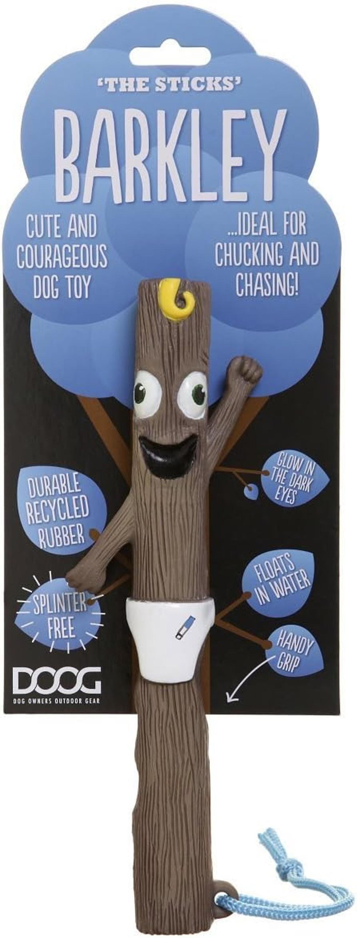 Safer than a real stick and a lot more fun. The DOOG Sticks are splinter free, made from recycled rubber, have glow in the dark eyes and FLOAT IN WATER. Due to the recycled material they are made from, the Sticks will not withstand being chewed so please use for fetching only and do not leave your dog unsupervised with his sticky friend.