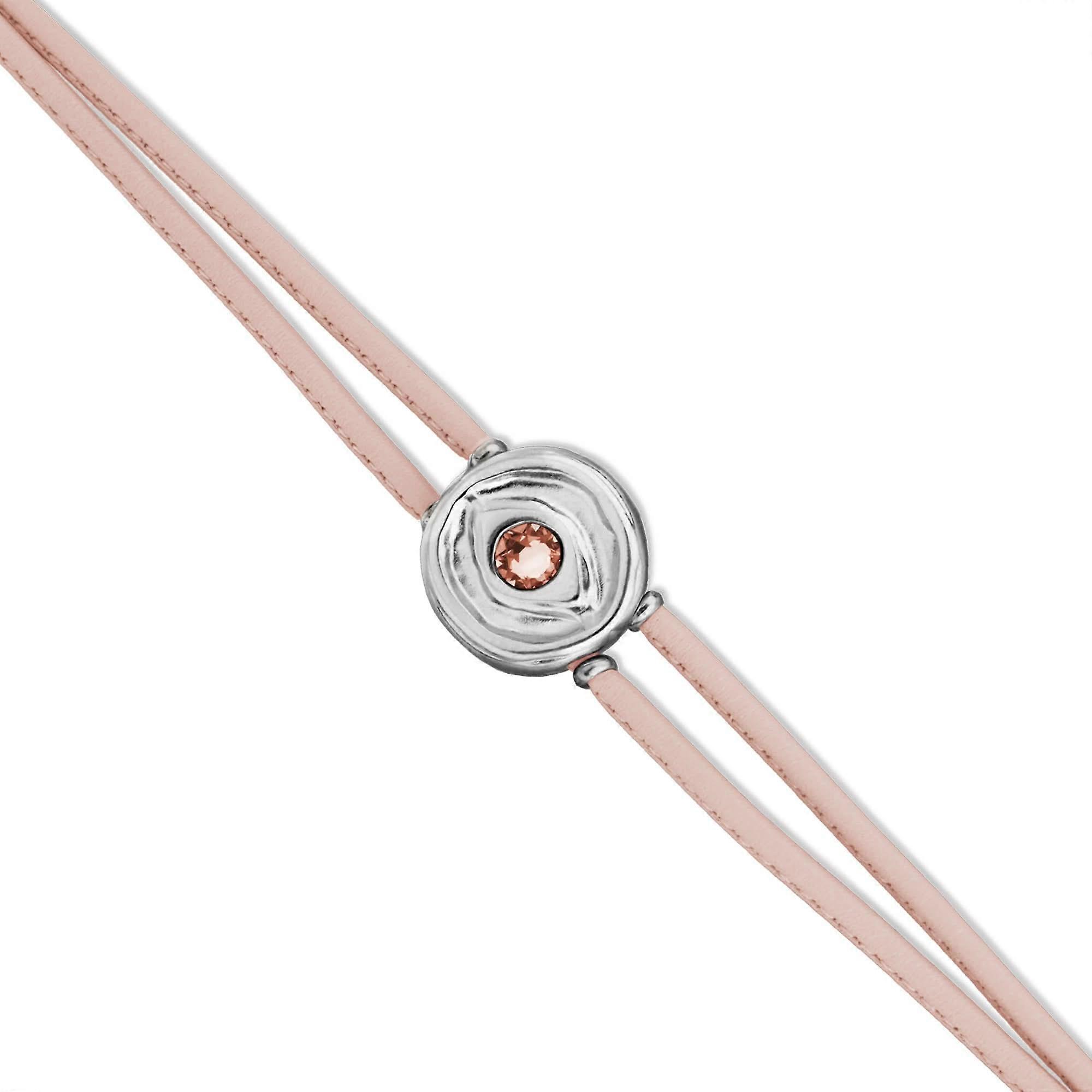 Double Pink Leather Metal Alloy Eye Detail Pleated Sterling Silver Crystal Bracelet PUL2601RSCMTL0M