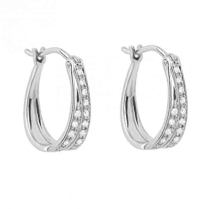 Double Row Pave Diamond 9ct White Gold Hoop Earrings GE1020