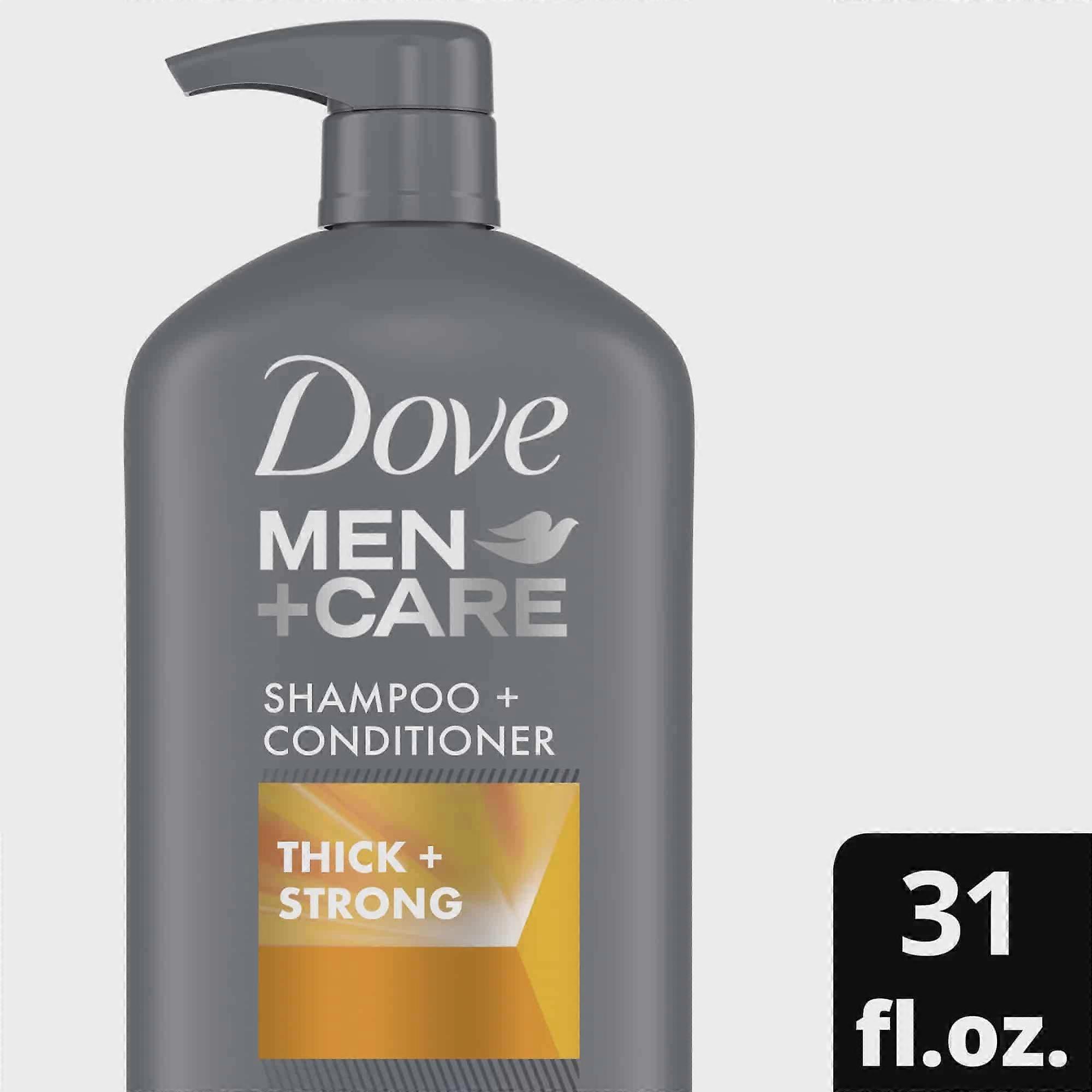 Brittle, dull, or thinning hair? Get stronger and thicker hair with Dove Men Thick & Strong 2 in 1 Shampoo and Conditioner. With caffeine + calcium, effectively cleanses and strengthens hair in every wash. The result? Healthy and fuller-looking hair from root to tip. Haircare for stronger, healthy-looking hair every day. This man strengthening 2 in 1 shampoo is available in the following sizes: 12 oz, 20.4 oz, 25.4 oz, 31 oz. Great hair care does not stop in the shower