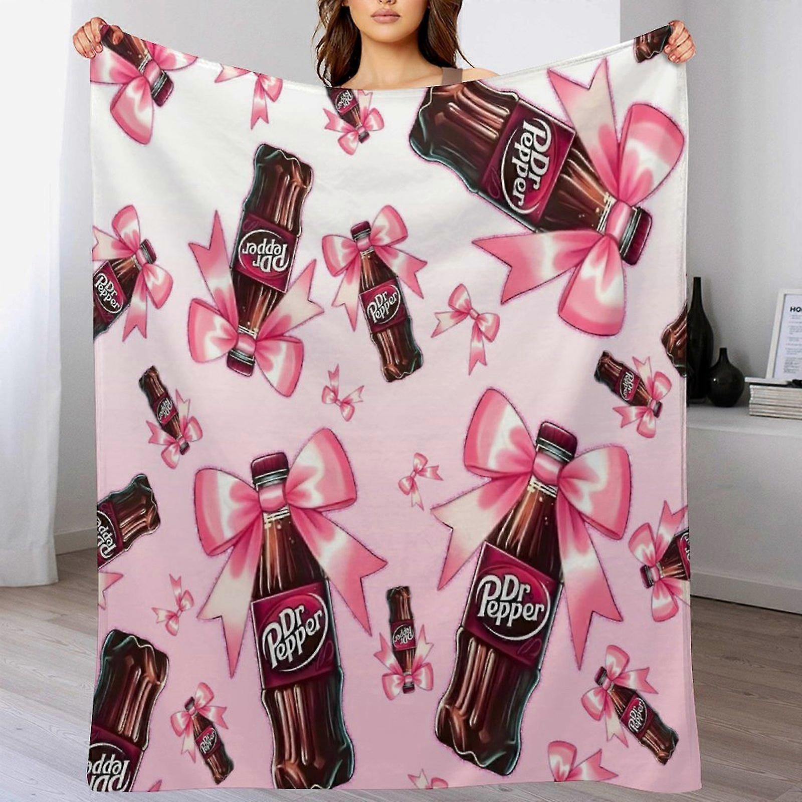 Dr Pep Bottle per Bottle Print Blanket - Pink Bow Pattern | Warm Soft Throw for Couch | For Soda Brand Fans”