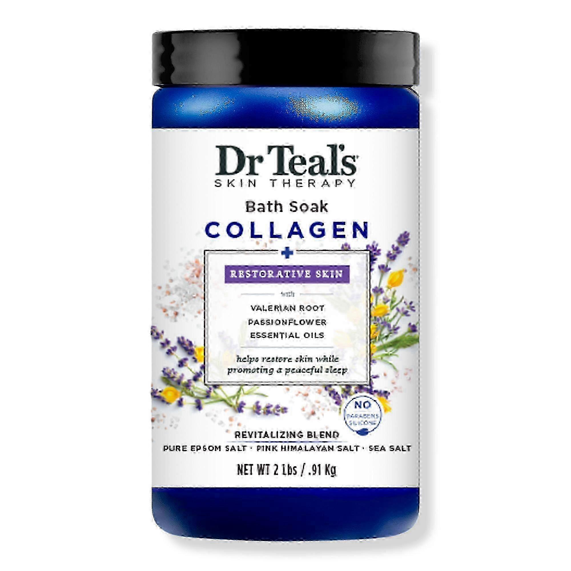 Dr Teal's Collagen + Restorative Skin Bath Soak with Valerian Root is made of a revitalizing blend of Pure Epsom Salt, Pink Himalayan Salt and Sea Salt to help soothe tired, achy muscles.BenefitsRestorative Skin formula combines Collagen with Valerian Root, Passionflower and essential oils to help restore skin while promoting a peaceful sleepLavender and Ylang Ylang essential oils to help soothe and calm your mind and bodyHelps restore skin while promoting a peaceful sleepMade with Pure Epsom Salt, Pink Himalayan Salt and Sea SaltNo parabens, no silicones Inactive Ingredients: Polyglyceryl-2 Triisostearate, Hydrogenated Polyisobutene, Hydrogenated Polydecene, Methyl Hydrogenated Rosinate, Polyglyceryl-2 Isostearate/Dimer Dilinoleate Copolymer, Trimethyl Pentaphenyl Trisiloxane, Bis-Diglyceryl Polyacyladipate-2, Hydrogenated Styrene/Methyl Styrene/Indene Copolymer, Synthetic Wax, Trimethylolpropane Triisostearate, Cera Microcristallina (Microcrystalline Wax), Ethylhexyl Palmitate, Cera Alba (Beeswax), Octyldodecanol, Irvingia Gabonensis Kernel Butter, Hydrogenated Coco-Glycerides, Parfum (Fragrance), Luffa Cylindrica Seed Oil, Pentaerythrityl Tetra-Di-T-Butyl Hydroxyhydrocinnamate, Linalool, Propyl Gallate, Tocopherol, Trihydroxystearin, Limonene, Citronellol, Geraniol, Citral, Sodium Hyaluronate, Glucomannan, BHT. May Contain: CI 12085 (Red 36, Red 36 Lake), CI 15850 (Red 6, Red 7, Red 7 Lake), CI 15985 (Yellow 6, Yellow 6 Lake), CI 17200 (Red 33), CI 19140 (Yellow 5, Yellow 5 Lake), CI 42090 (Blue 1, Blue 1 Lake), CI 45380 (Red 21, Red 21 Lake, Red 22, Red 22 Lake), CI 45410 (Red 27, Red 27 Lake, Red 28, Red 28 Lake), CI 73360 (Red 30, Red 30 Lake), CI 77163 (Bismuth Oxychloride), CI 77491, CI 77492, CI 77499 (Iron Oxides), CI 77742 (Manganese Violet), CI 77891 (Titanium Dioxide). PRODUCT INGREDIENT LISTINGS ARE UPDATED PERIODICALLY. BEFORE USING A BENEFIT PRODUCT, PLEASE READ THE INGREDIENT LIST ON THE PACKAGING OF YOUR PRODUCT TO BE SURE THAT THE INGREDIENTS ARE APPROPRIATE FOR YOUR PERSONAL USE. Suggested Use: Pour at least 2 cups of Dr Teal's Bath Soak under warm, running bath water. Soak for 20 minutes and let the rich minerals and essential oils soothe and rejuvenate your skin and muscles. Due to the natural ingredients in the formula, discoloration and clumping is normal. Please close the lid and shake before using. Precautions: For external use only.