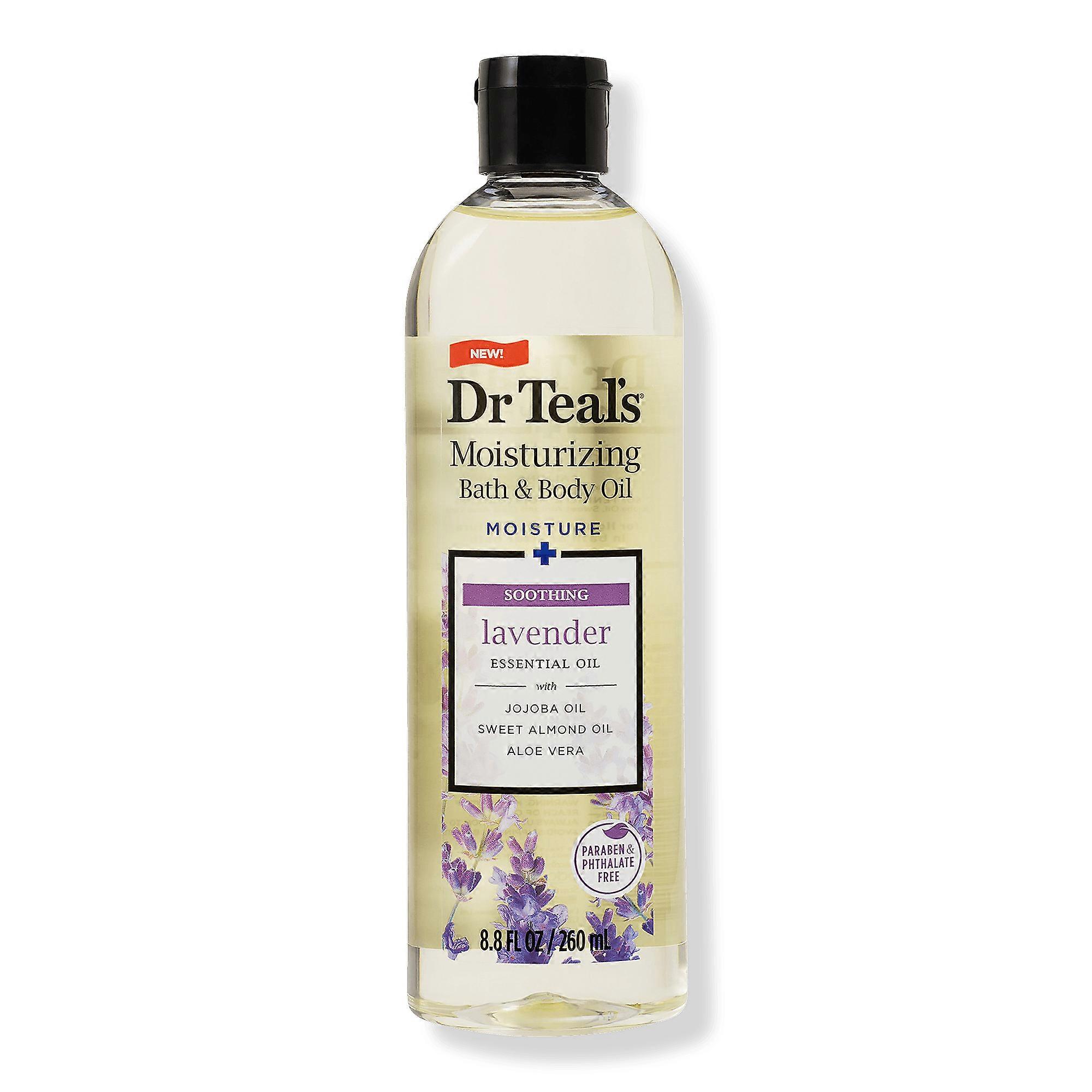 Dr Teal's Lavender Moisturizing Bath & Body Oil is a delicately scented body oil formulated to nourish the skin and calm the mind. Infused with calming lavender essential oil and a blend of jojoba oil, sweet almond oil and aloe vera to soothe dry skin and seal in moisture.