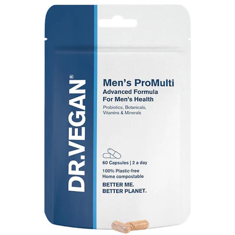 Dr Vegan Men's ProMulti Capsules:Comprehensive support for prostate, testosterone and libidoContains Clinically studied probiotics and prebioticsHealthier skin, hair, energy & immunityPlant based and zero additives