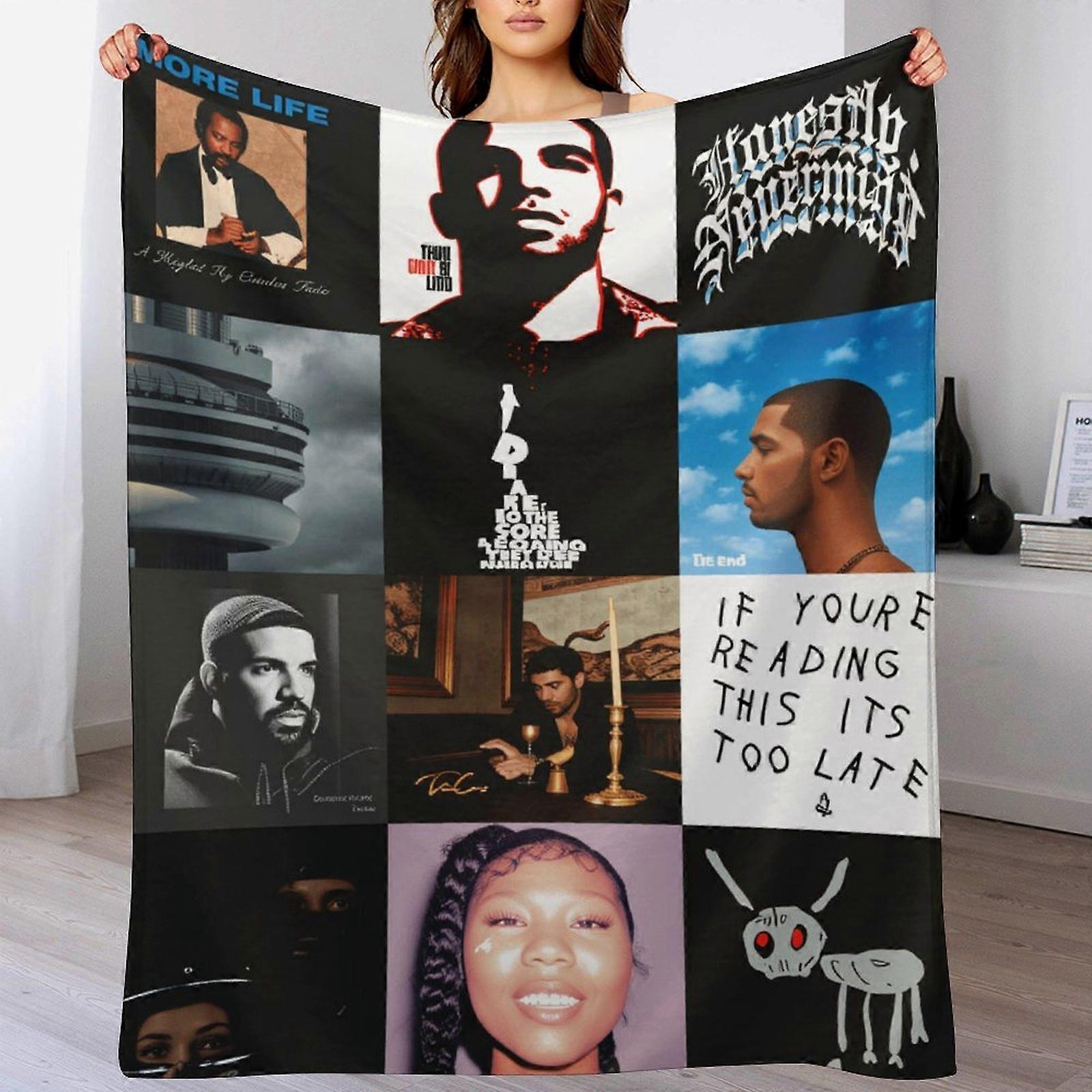 Drake Album Cover Collage Print Flannel Blanket - Soft Warm Throw | Hip-Hop Gift for Music Enthusiasts