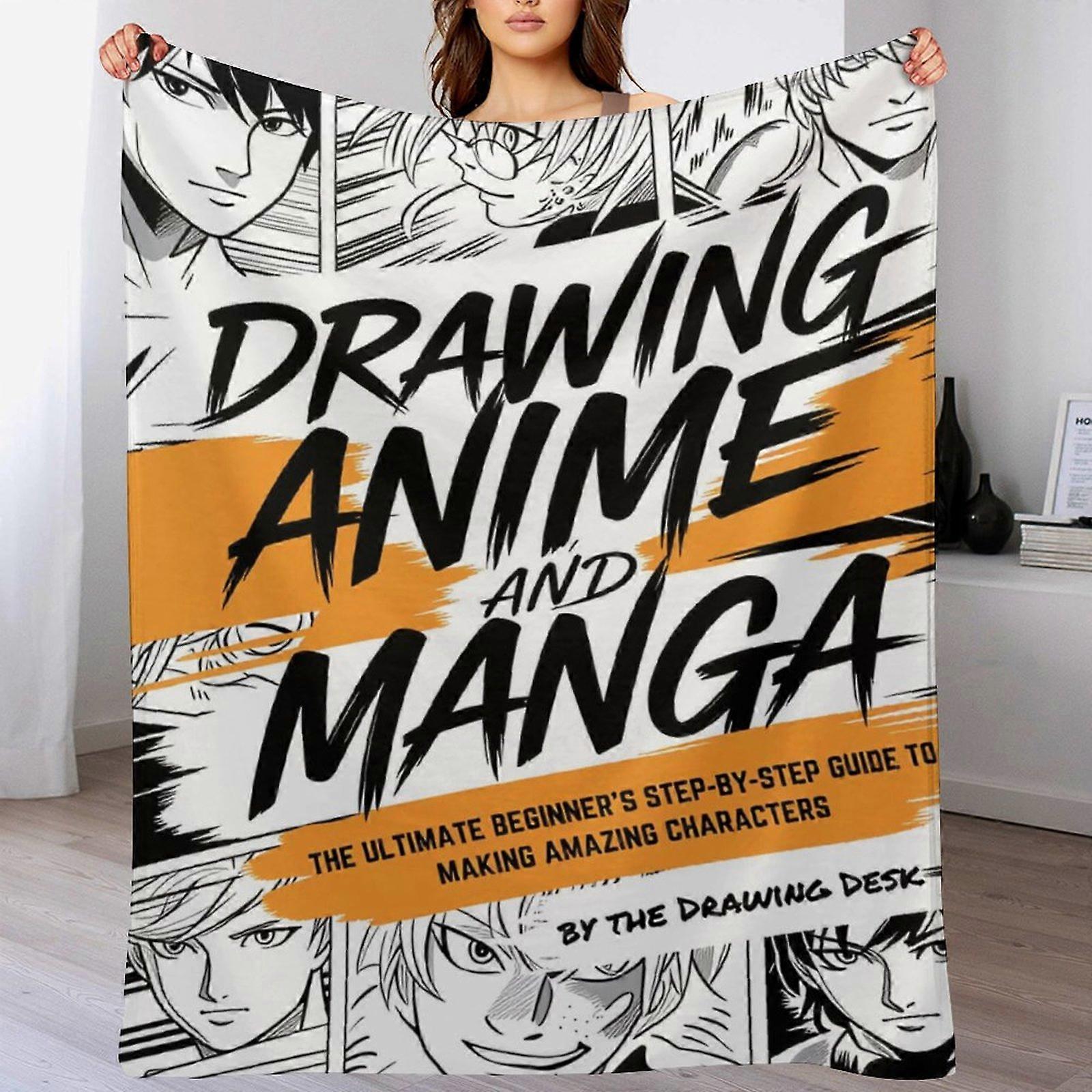 "DRAWING ANIME AND MANGA" Comic Style Graphic Print Flannel Blanket - Soft Warm Throw, 50x60 Inch, Anime Fan Decor (Bed/Desk)