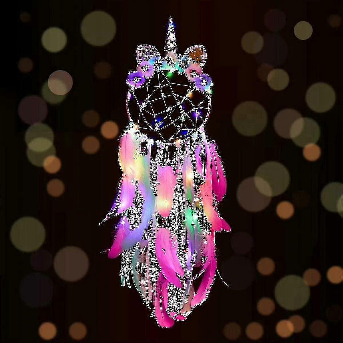 Dream Catcher With Colorful Led Lights For Girls Boys Bedroom Wall Decor Hanging Decoration Holiday Gift (pink)-dwdz