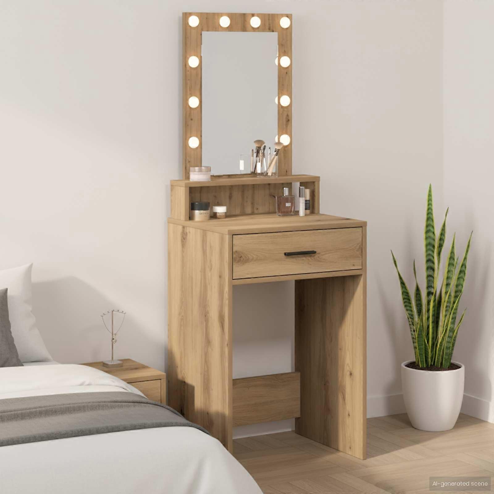 Farbe: BraunMaterial: HolzwerkstoffGesamtabmessungen: 50 x 41 x 140 cm (L x B x H)Gewicht: 18,05 kgStauraumLanglebigStromquelle: USBLichttyp: Spiegelbeleuchtungmit 1 SchubladeFlachspiegelRahmenmaterial: HolzwerkstoffNur für den InnenbereichLieferumfang:1 x SchminktischMontage erforderlich: Ja