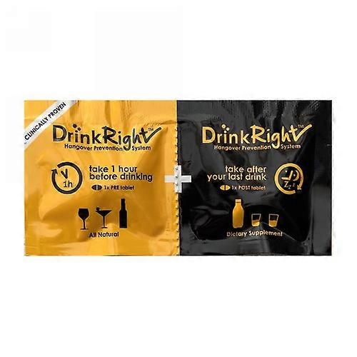 WISE CHOICE FOR HANGOVER PREVENTION: Drink ?Right provides you with hangover prevention for a better next day morning with just two pills (Pre Tablet before your first alcohol consumption and Post tablet after your alcohol consumption)BOOSTS YOUR BODY'S NATURAL RESPONSE TO ALCOHOL: N-acetyl-cysteine is an amino acid which helps break down alcohol-induced toxins by boosting your body's glutathione levelsLicorice root: For centuries, licorice root has been used in help with reducing stomach inflammation thus preventing the hangover experienceSpeeds up alcohol detox and cleansing: Drink-Right speeds up the elimination of acetaldehyde from your liver, helps in preventing hangover experiencePrickly pear extract: A prickly pear extract can counter the effects of alcohol inflammation in your liver, mitigating headaches and nausea which helps in preventing the hangover experience
