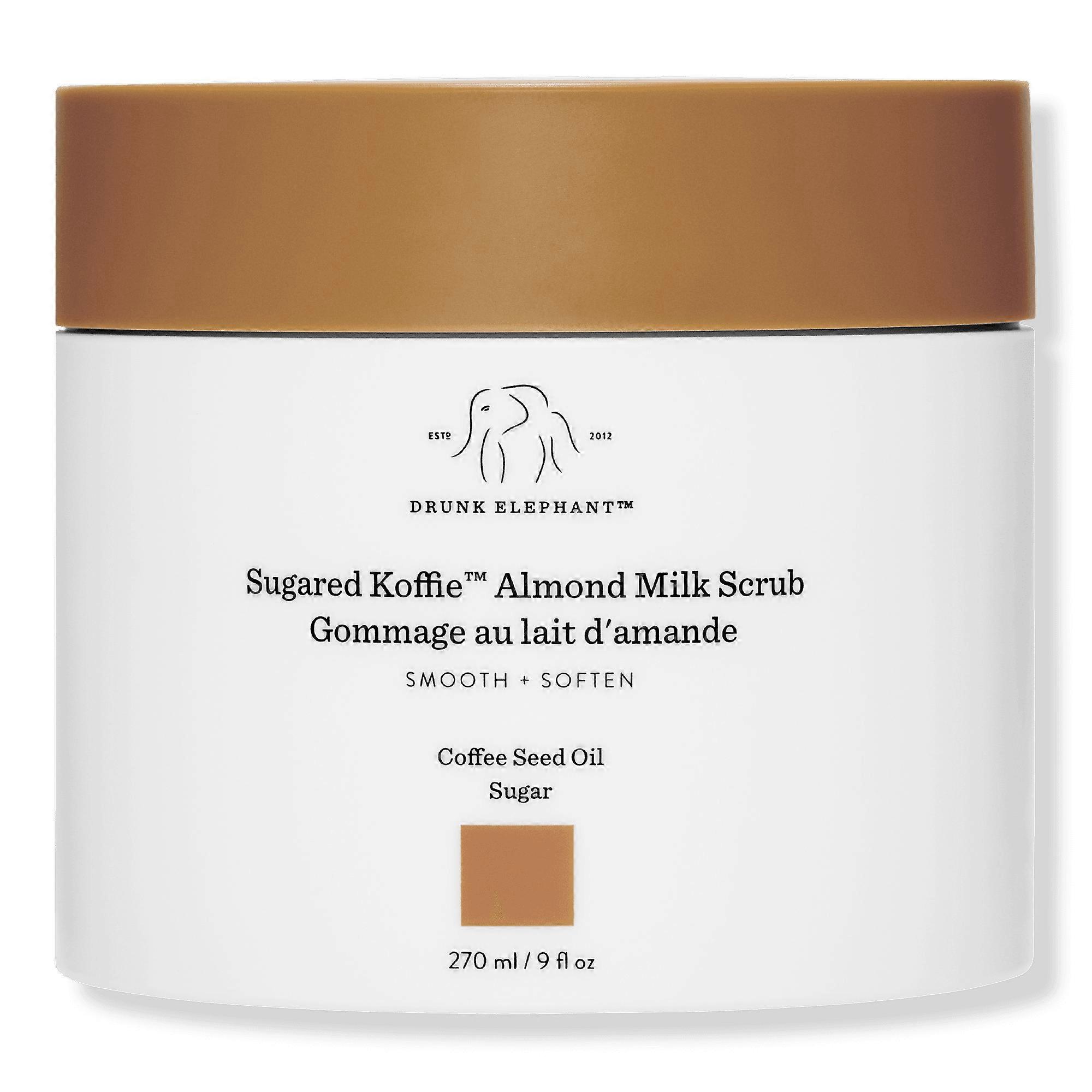 Drunk Elephant's Sugared Koffie Almond Milk Body Scrub gently sweeps away dead skin cells and buffs dry spots as it gives moisture - all without disrupting your skin barrier or sensitizing.
