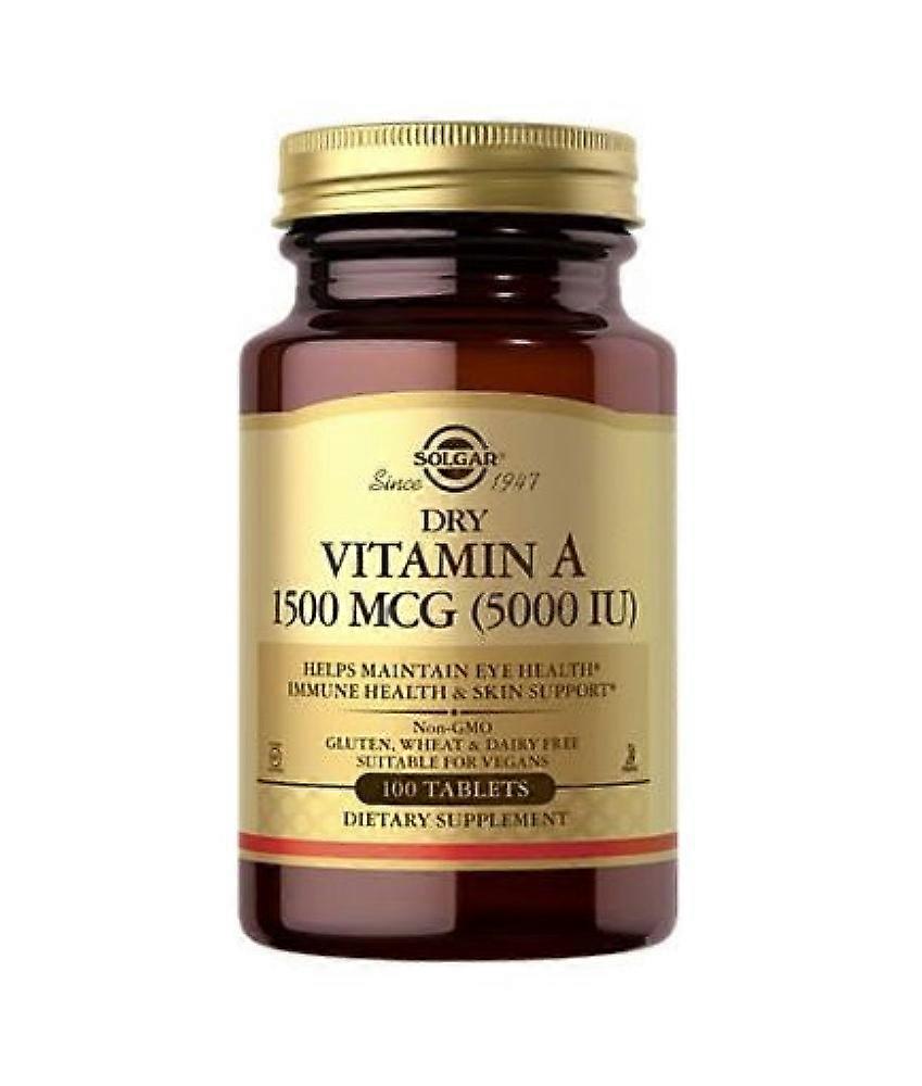 5,000 IU Sugar, Salt and Starch Free Solgars Dry Vitamin A Tablets are free of yeast, wheat, soy, gluten and dairy products and are formulated without the use of artificial preservatives, flavors or colors. Directions