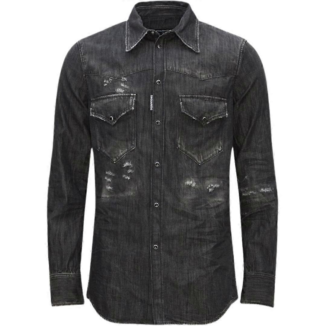 Dsquared2 Fashion Western Faded Black Denim Shirt