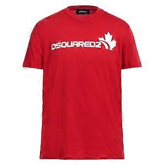Dsquared2 White Maple Leaf Logo Cool Fit RedT-Shirt