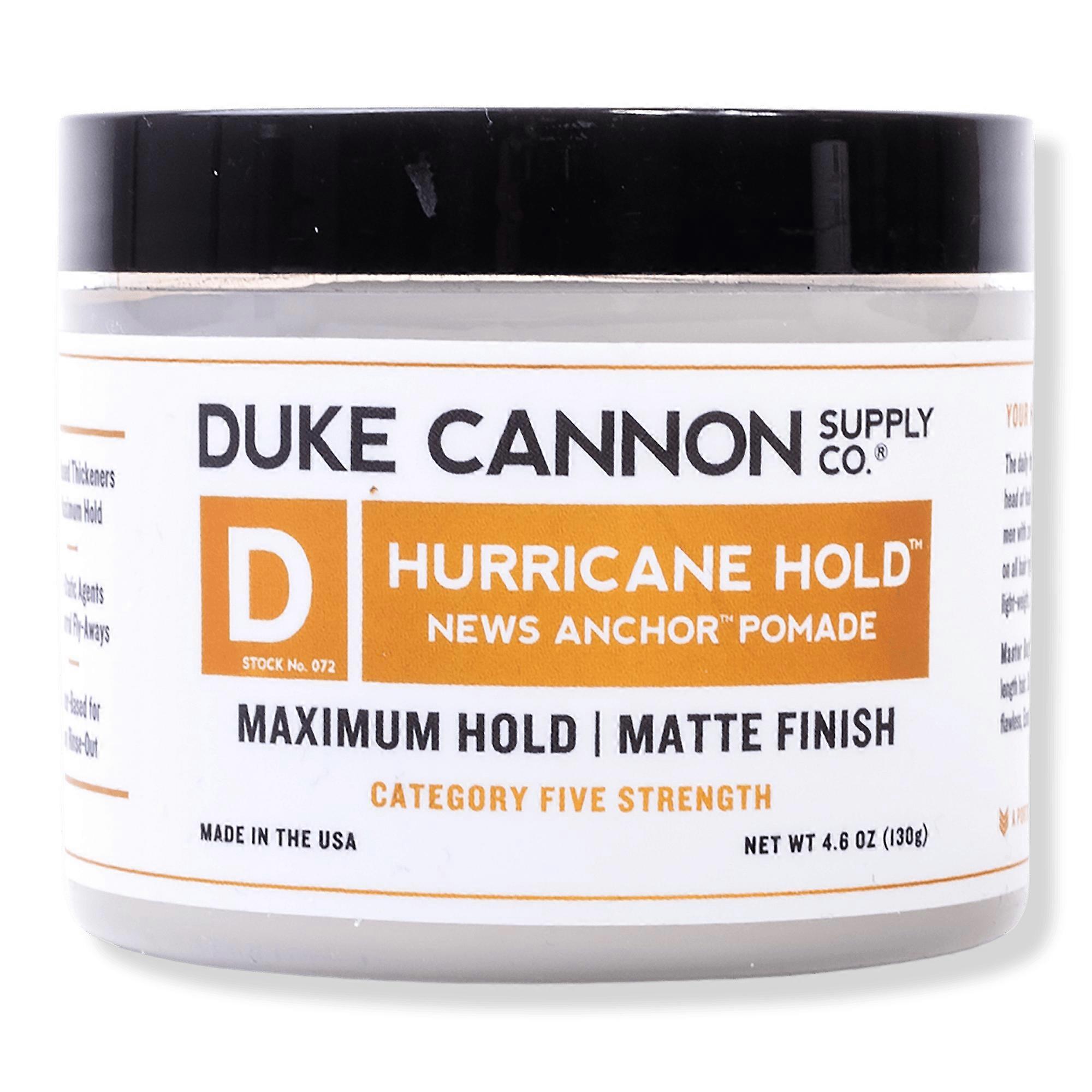 Duke Cannon Supply Co.'s Hurricane Hold News Anchor Pomade is built for hard-working men with zero tolerance for even a single hair out of place. Works on all hair types to give unparalleled long-lasting hold and a light-weight, matte finish.