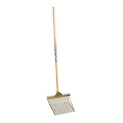 Made of 18 gauge, corrosion resistant yellow dichromate plated steel, with a triangular support brace to prevent the pitch fork head from coming loose. Specially designed tines are uniquely angled to provide easy manure pickup with less spilling. 52 wood handle; fork head measures 11-3/8Lx15W.