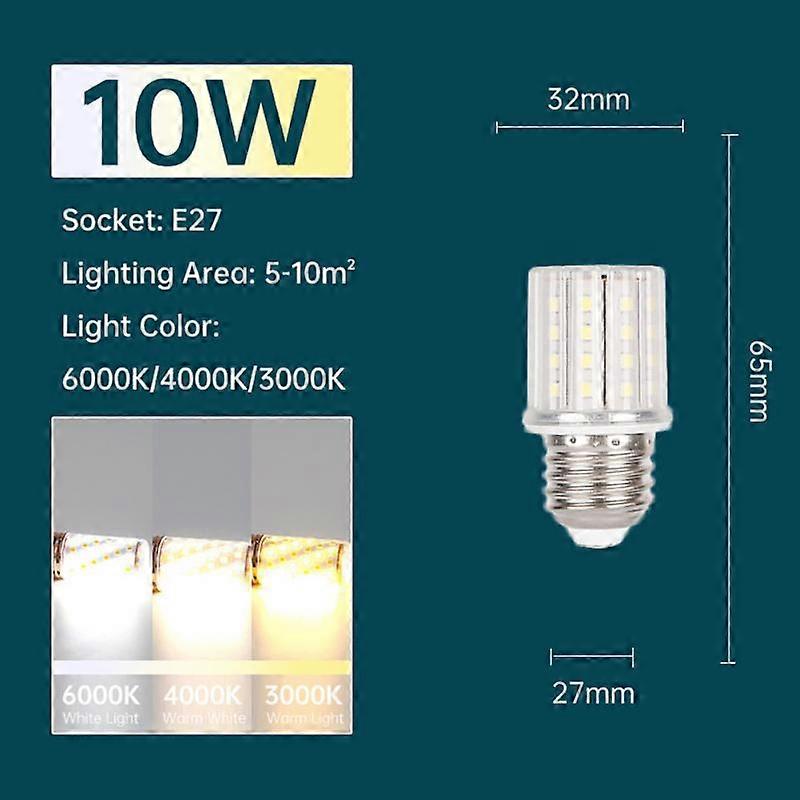 E27/E14 LED Bulb 110-220V Corn Bombilla Bulb 10W 20W 24W LED Lamp Light for Bedroom Living Room Decor Bulb LightingDescription:Voltage: 110-220VMoc: 10W/20W/24W Bulb: E14/E27Lighting Area: 5-10m & sup3; Light Color: White Light/Warm White/Warm, BrightSpecifications:【High-Quality PBT Material】The bulb is made of PBT material, which has good heat resistance, high insulation, fast heating, stable operation, and long-term use.【Wide Lighting Range】The 280° beam angle can easily illuminate the whole room, making the light brighter and more comfortable.【Tri-color Lights】Tri-color Light (White Light/Warm White/Warm, bright), no video flicker, blue light reduction, eye protection【E14/e27 standard】Suitable for all kinds of lamps in the house, easy to install and easy to use【High brightness and soft】High-quality LED chips provide bright and soft light, stable and durable, energy-saving. Package Included:1 * Super Bright LED Bulb